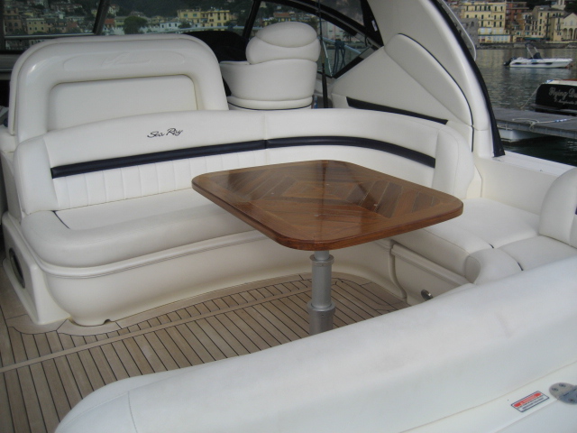 Hermoso ejemplar del abierto estadounidense con techo duro. Casco azul y una cabina espaciosa en madera de teca. Los interiores cuentan con una cabina de barco de proa por dos servicios de buffet independientes (ducha y wc con receptor), una cabaña de huéspedes doble servida por un cuarto de baño con ducha. Amplia y funcional cocina y comedor y elegante. Todo está en excelente estado y completo opcionales. |