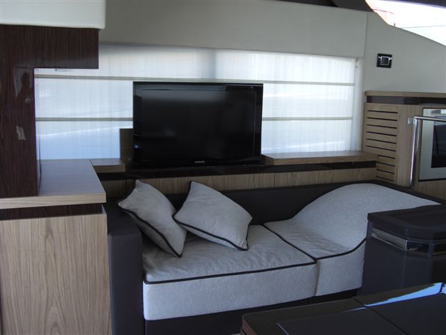 Notas internascon ducha. Cabina VIP en la proa con cama de matrimonio con baño isla, tercer camarote con cama en la parte superior. El gran comedor con bar húmedo, chaise long, la tabla del apertura, tv plegable, contribuye a crear un refinado y elegante salón de capacidad de alojamiento alta Notas de la instrumentaciónDoble instrumentación, entretela, mosca:Piloto GPS plotter 12 p., automático, sonda, profundidad joysticks para maniobrar, contador de la cadena, lengüetas de ajuste con la brújula de Vhf, indicadores, controles electrónicos Notas de armamentoGeneradorAire acondicionado h/C, ajustable en cada habitación Hélice de proa Pasarela hidráulica retráctil Plataforma de teca con sistema de arriba/abajo Bañera de teca Piso de madera interna incluyendo cabañas Wet bar con bodega Retráctil Tv en comedor Tabla de bañera plegable nevera 2 ' sobre la marcha Parrilla sobre la marcha Bimini top Amortiguadores al aire libre completas Toldo cierre de cabina Deformación del torno en la popa REAL OPORTUNIDAD NUEVO BARCO |