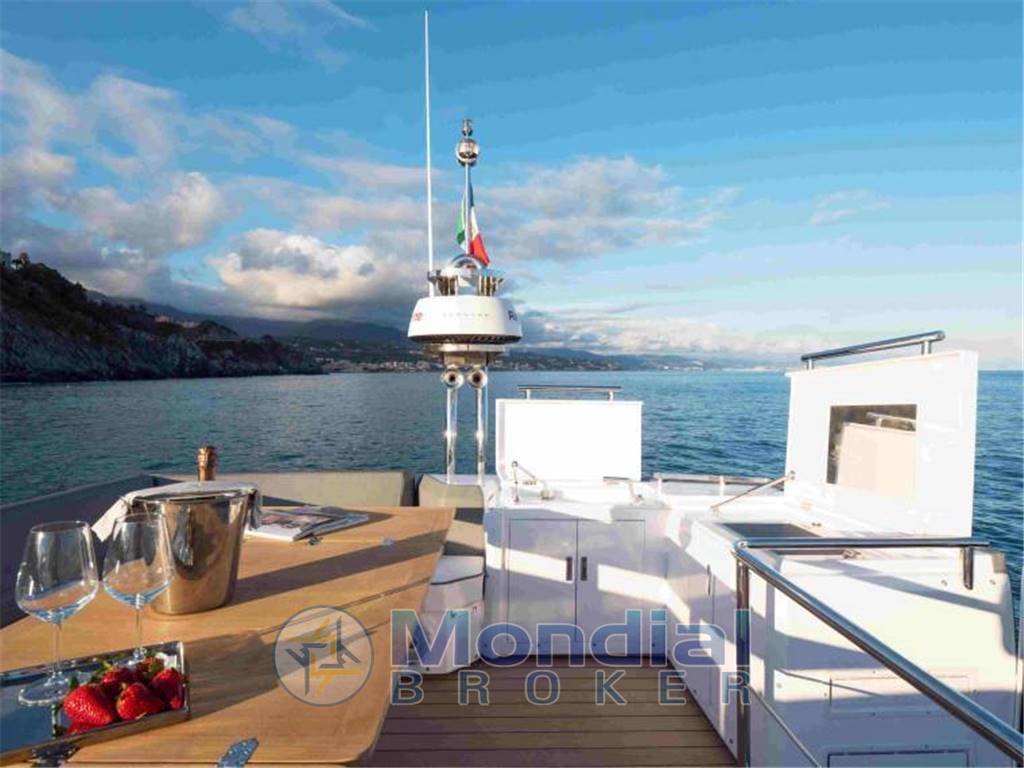 - pulpito di prua con supporto in acciaio inox - uscita di scarico - Porta bandiera e antenna TV - Grande divano con contenitore - teak con cruscotto estensibile - coperture per consolle e tavolo |