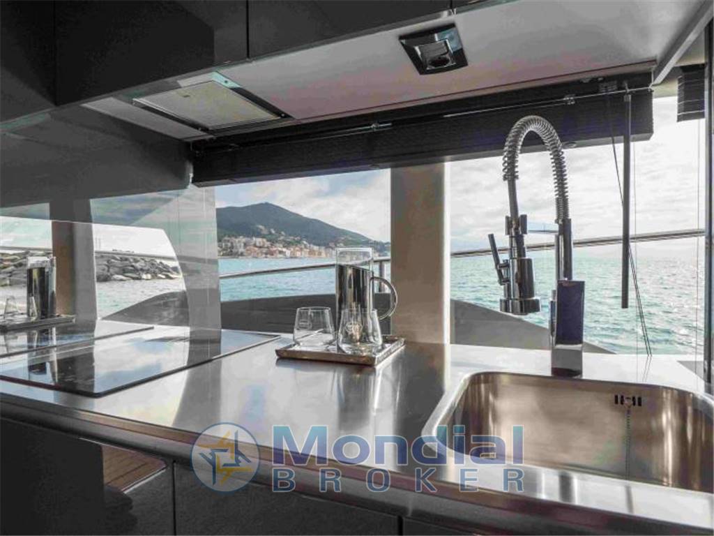 Notas internasCUCINA - Scala di accesso - luci di cortesia - mobile cucina con ante e piano in corian, cassetti e pensili - piastra in vetroceramica 2 fuochi - cappa aspirazione - forno microonde - frigorifero doppia anta 200 l - oblò in acciaio inox - faretti led - pavimento e porte in legno - prese di corrente. Cabina di prua - Letto matrimoniale con contenitore inferiore, materassi, cuscini e copriletto - Letto Imbottita - Testata vetrata con pannelli imbottiti - Tappezzeria laterale - Armadio in legno - Pavimento in moquette - Luci di lettura - Faretti LED - Due letti singoli con spazio inferiore, materasso, cuscini e copriletto - Prese di corrente - Oblò in acciaio inox - Tende pieghevoli Cabina armatoriale - Letto matrimoniale con contenitore inferiore, materasso, cuscini e lenzuola - testiera e imbottita - armadi in legno all'ingresso - cassettiera laterale - Pavimento in legno moquette - oblò in acciaio inox integrati nelle finestre panoramiche Vetro - Luci di lettura - Faretti LED - Prese di corrente - Tende pieghevoli Cabina ospiti 2 Letti singoli con gavone sottostante, materassi, guanciali e copriletti - giroletto tappezzato - armadio guardaroba in legno - pavimento in moquette - luci lettura - faretti led - oblò in acciaio inox - tenda veneziana. - WC marino - doccia a telefono con barra , bidet - box doccia in plexiglass - pavimento in legno mobili in legno con lavabo e piano di lavoro in Corian, lavello e rubinetto in ceramica miscelatore - armadio con ante a specchio - tende veneziane in legno - occhio dibue in acciaio inox - doppio ingresso da cabina di prua e dinette - Accessori bagno Notas de la instrumentaciónGps plotter, pilota automatico, vhf, flap, radio FUSION- altoparlanti stereo, - contatore catena - Televisori - clacson, luci di navigazione, luci di ancoraggio, Notas de armamentoAttrezzatura di coperta- Rullo di prua - verricello elettrico - Ancora 20 kg e catena da 12 m in acciaio zincato 150 m - guida fune in acciaio inox - cavo di sicurezza - deposito di prua con doccia caldo/freddo con sportello in vetroresina - doppi tergicristalli elettrici con Rondella. PIATTAFORMA BALNEARE - scaletta da bagno a scomparsa in acciaio inox - cornamuses occultabile per la posa dell'ormeggio. - Ponte in teak - divano grande - tavolo telescopico in teak con bordo allungabile - altoparlanti stereo - Faretti LED con regolatore intensità - messa a terra 230 V - ingresso acqua ad alta pressione - doccia Caldo/freddo - Faretti LED impermeabili |