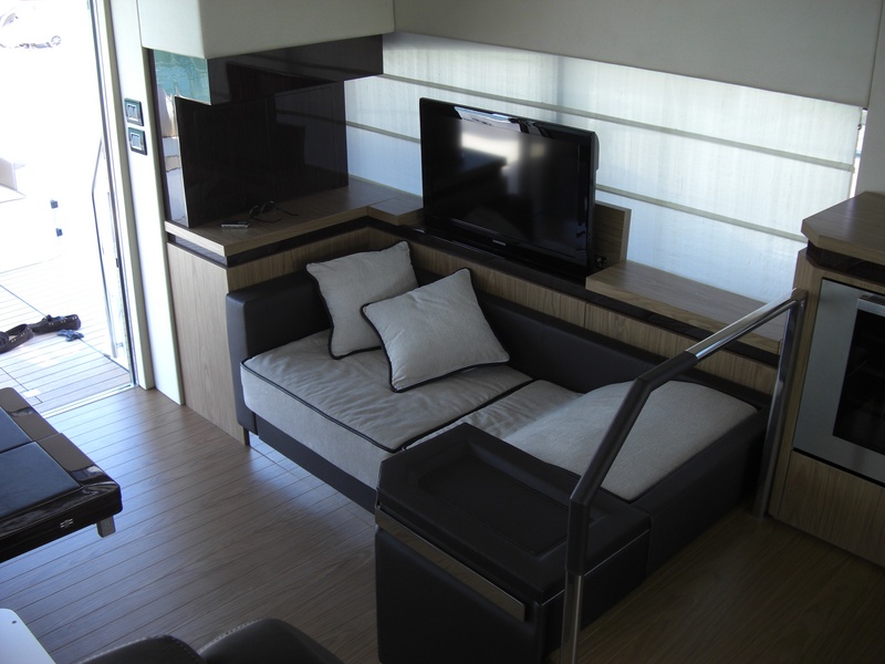 Notas internasCentro de barco de cabina a cabina completa haz doble en proa-tercer cabaña con camas baño con cabina de foreship de sovvrapposti ducha con entrada doble: amplio y luminoso comedor de toda la cocina con barra rincón en el salón, la chaise longue, sofá, mesa, doble apertura libro, SlideAway LCD TV y la cave à vins ayudará a crear un elegante comedor, vivienda refinado y de alta capacidad. Pisos, puertas y muebles de nogal, paneles y techos de tela, cuero tapicerÃa, wengué y lacadas superficies dan vida a un acogedor y elegante, indispensable elemento de estilo de la casa de Sessa. Acceso a tres cabañas y separación con cocina están inmersos en un verdadero pozo de luz que entra desde el ventanal de la viga superior.La cocina se caracteriza por un contador al negro con cristal fregadero, encimera vitrocerámica, nevera con dos persianas, horno de microondas y armarios y cajones numerosos asegura niveles excepcionales de facilidad de uso y habitabilidad, comparable a las mascotas. Las dos ventanas de camarote de gran ayudan para hacerla una suite real con vista panorámica, equipada con gabinetes de almacenamiento, vestuario y pantalla LCD para dos tops independientes amplia y espaciosas.El baño privado con inodoro, lavabo y ducha móvil equipado con cromaterapia de atmósferas relajantes sugieren, hacia una nueva dimensión de bienestar.