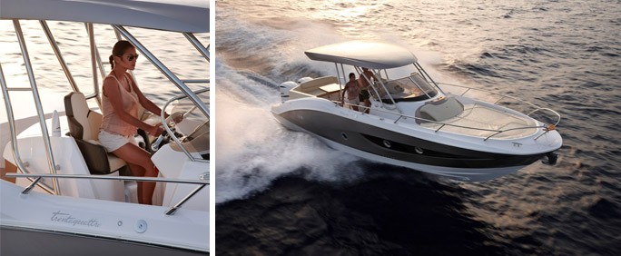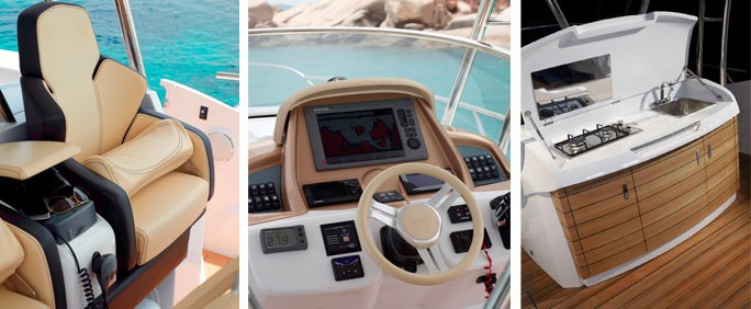 Descubrir KL 34: dos cabañas, un t-Top bimini con duro de la guitarra, un lado puerta con escalera de baño, un pasillo eléctrico en popa... un barco y el equipo ideal para los amantes de sensaciones fuertes. Entrar en un mundo de adrenalina! |