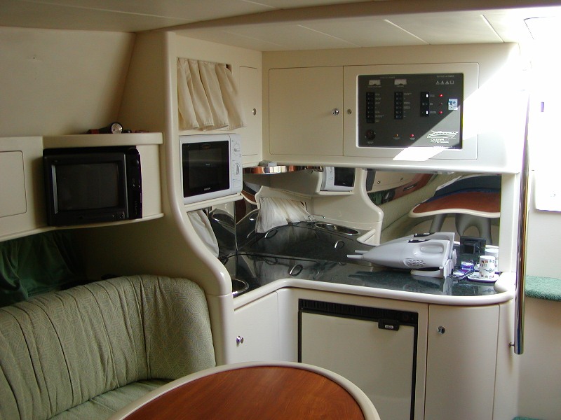 Notas internasde cabina en la proa - una cama doble en popa - comedor con mesa y sofá, "u" - fregadero de la cocina + fuegos + microondas - baño -