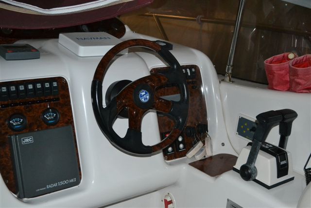 Notas internasCabina de popa doble muy espaciosa con sofá. Acceso de servicio dual. Camarote de proa con cama doble pennisula. Estribor comedor con mesa plegable. Lado de estribor de la esquina de cocina Notas de la instrumentaciónInstrumentación completa, piloto automático Raymarine ST 6001 Navman Tracker 5600 Gps CCI 1500 MKII Radar, Raymarine Fishfinder, Raymarine ST 40 VHF tvNotas de armamentoArco de hélice, hidráulica Besenzoni Passerela, generador, aire acondicionado frio, inodoro eléctrico, ducha y bañera, caldera.Cabina CojÃn soláriums, cojines de Sun, hidráulicas flaps, arco nevera en cabina, teca Plataforma de popa. Cubierta de la cabina completa, cierre completo ajustable. |