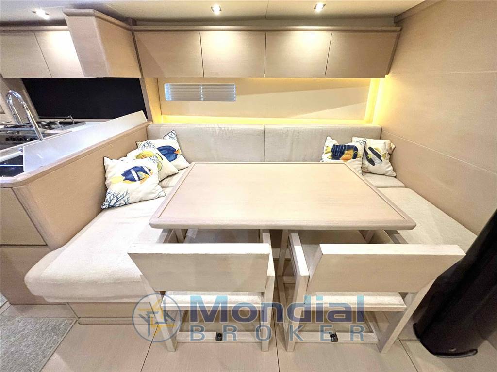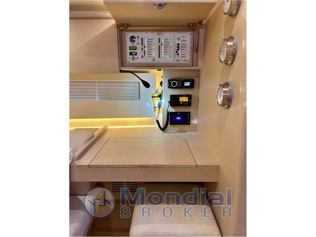 Notas internasInterni in rovere sbiancato Piano cucina rivestito in Corian “Light Ash” Ribaltina in legno in cucina Piano bagni rivestito in Corian “Light Ash” Doppio lavello in cucina Cucina con forno Alpes Inox GN Space 2 sedie amovibili in dinette Cabina sinistra con doppio letto Pompa di sentina elettrica Pompa di sentina manuale Luci interne al led Luci d’atmosfera interne al led Frigo elettrico a pozzetto Frigo elettrico a doppio cassetto Mastervolt inverter 12V 2000W Mastervolt caricabatterie 460 lt inox serbatoio acqua Serbatoi acque nere uno per bagno 220 V con cavo in banchina 5 prese 220 V in ogni cabina e ogni bagno Flat TV Samsung 2 WC elettrici Planus Aria condizionata in dinette a cabina di prua 4 batterie servizi 1 batteria motore 1 batteria generatore Lavatrice nel bagno di poppa Dissalatore Selmar 100 lt h Notas de la instrumentación2 display B&G H5000 GDFH 5000 Hydra processore H 5000 power computer B&G Autopilota H5000 GPD display B&G TRITON VHF V 50 incluso seconda unità H 50 in pozzetto 3 B&G Maxi Display 20-20 all’albero B&G Touchscreen display Zeus 3 “9” alla console Access point WIFI Simrad Go Free SIMRAD AIS NAIS 400 Saliscendi TV Fusion Apollo MS AV 750 Hi-Fi Stereo 2 altoparlanti in dinette + 2 in pozzetto Notas de armamentoTeak nelle camminate con comenti grigiTeak nella tuga con comenti grigi Scafo verniciato Awlgrip “Midnight Blue” 6 finestre a scafo Pacchetto deck con osteriggi a filo Solimar Tavolo pozzetto in teak 2 consoles Ruote timone in carbonio Sprayhood con copertura in teak Bimini area timone Pannelli solari sul bimini Tendalino parasole Cuscini pozzetto Cuscini tuga Portellone di poppa apribile elettricamente Tender garage Passerella richiudibile Carboway Coperture timoni in canvas Copertura tavolo pozzetto in canvas Copertura consoles in canvas Delfiniera in Carbonio North Sails 3DI randa full batten nera North Sails 3DI fiocco autovirante nero North Sails G Zero con furler Ubi Maior Gennaker con calza Trinchetta con furler Ubi Maior Albero alluminio pitturato di nero (Sparcraft) Harken TD avvolgifiocco Salpancora elettrico con extra controllo in console Centralina idraulica Bamar con tendipaterazzo e vang Rotaia fiocco autovirante 4 Harken winches Harken Performa 60, dei quali 2 elettrici Equipaggiamento Gennaker / Code Zero Lazy jack-lazy bag 6 bitte abbattibili in inox Cancelletti poppa in tessile Luce boma Luci di navigazione al led |
