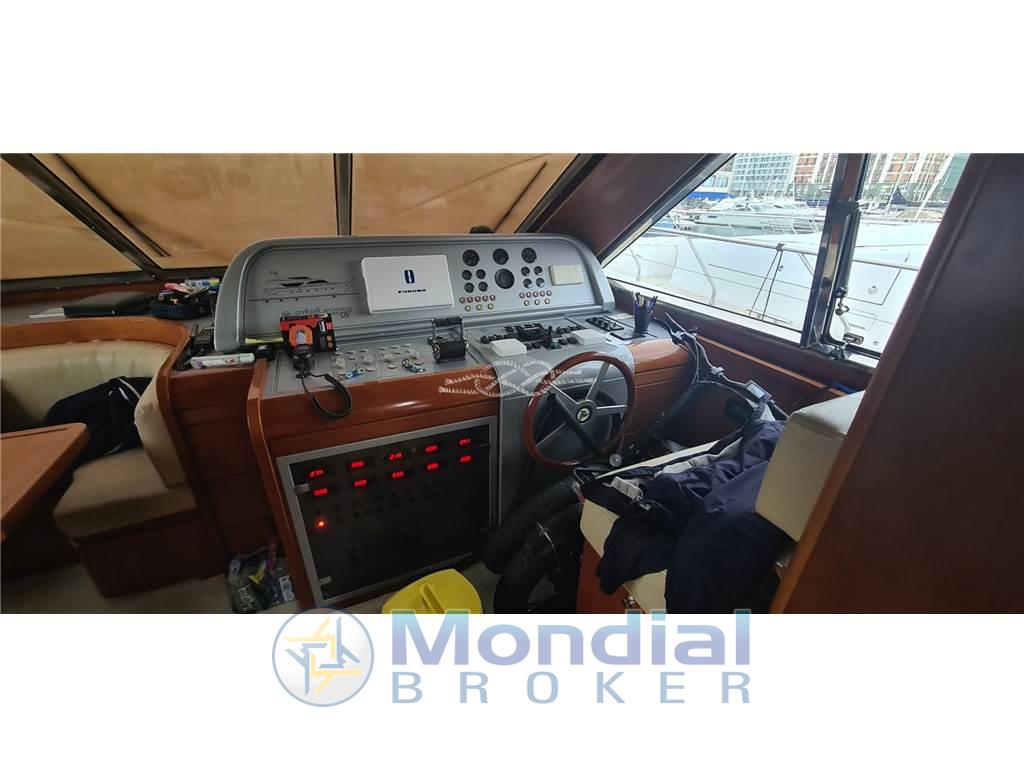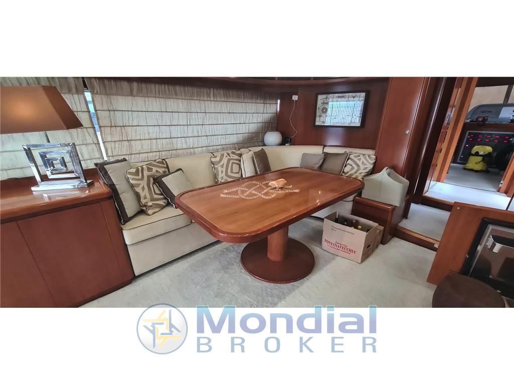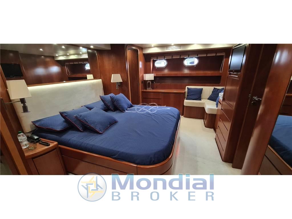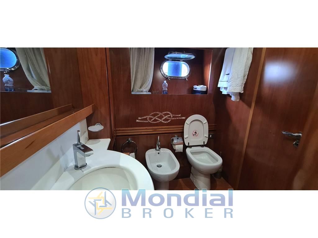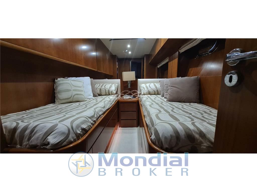 Notas internasSalone con divano a "L" e tavolo pranzo - day toilet - plancia con dinette - cucina - cabina armatoriale con letto matrimoniale, bagno con doccia separata, cabina armadio - cabina vip con letto matrimoniale, bagno con doccia separata, armadio - cabina ospiti con letto alla francese, letto pullman, bagno e doccia separata - cabina ospiti con letti in piano, letto pullman, bagno con doccia separata. Alloggio equipaggio a prua per due con bagno.
