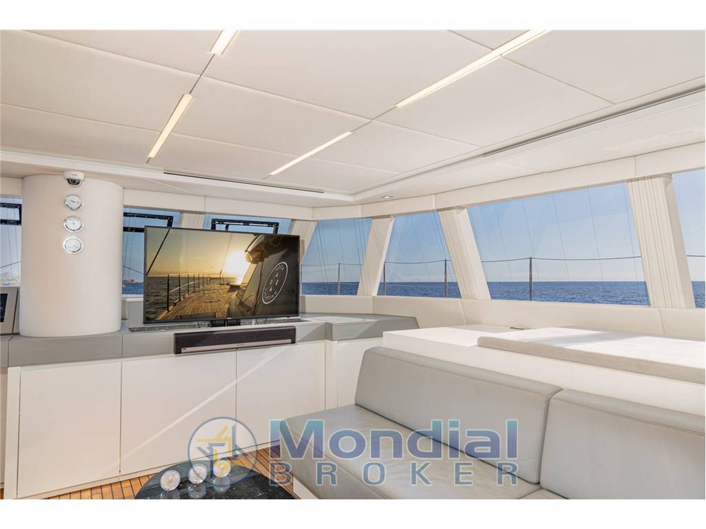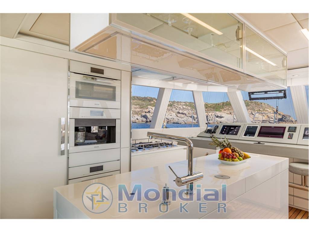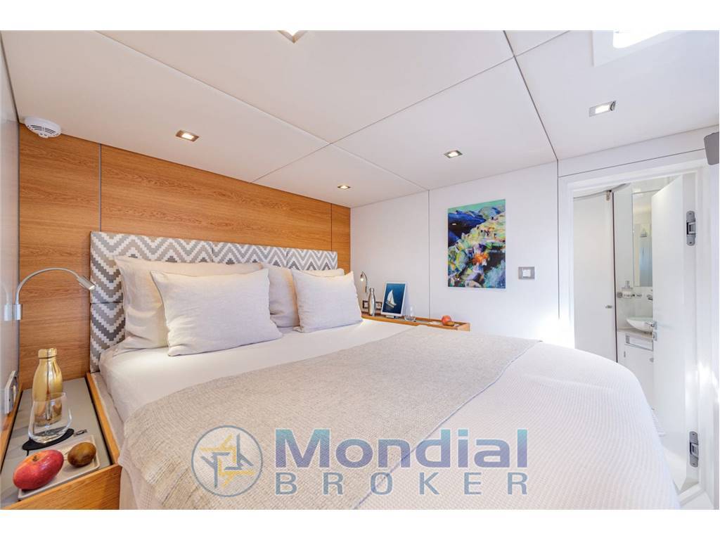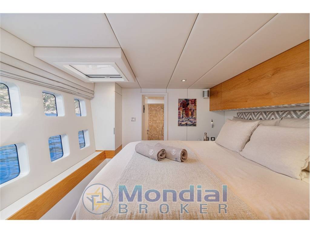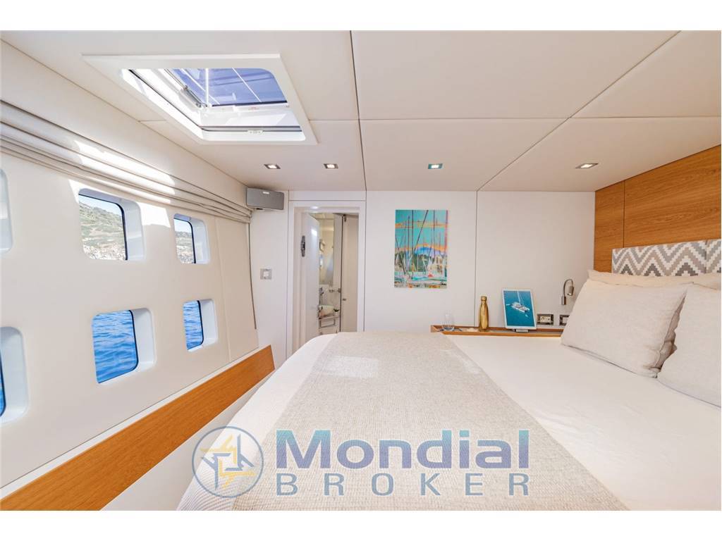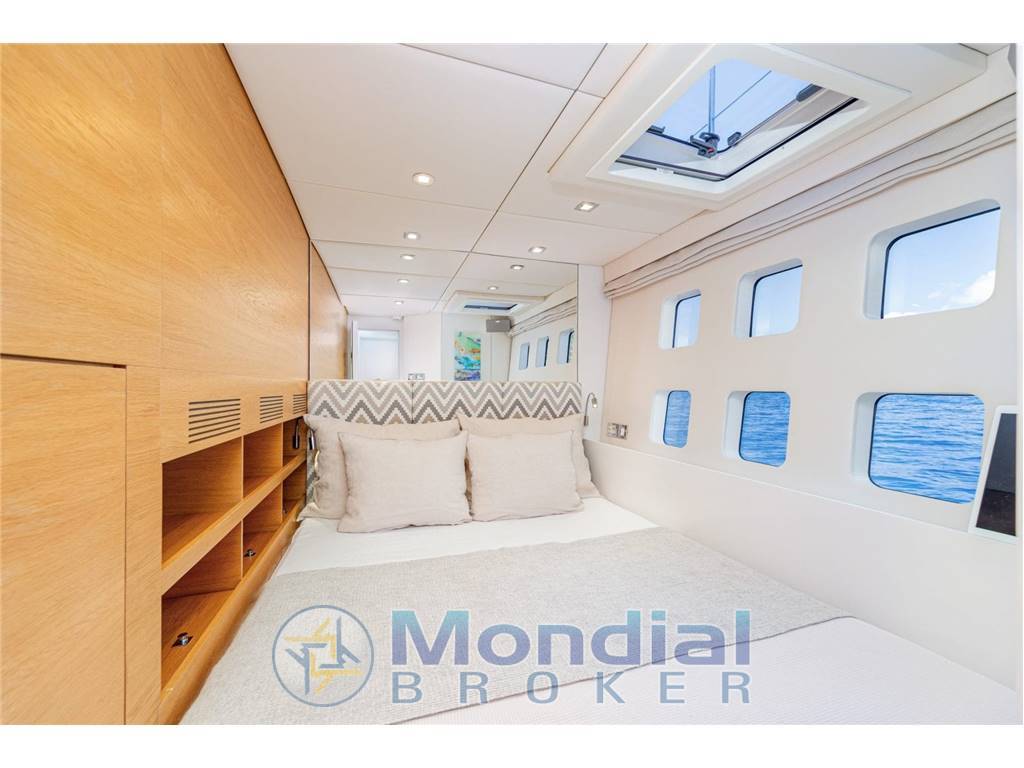 Notas internasProgettato con grande precisione, il catamarano a vela di lusso SUNREEF 62 presenta un notevole design degli interni contemporaneo dove dominano i colori del bianco e grigio, e un layout per poter ospitare un massimo di 8 persone in 4 cabine splendidamente arredate. Un salone spazioso e arioso comprende una comoda seduta accompagnata da un elegante tavolino da caffè che si combina magnificamente con un pavimento in teak. Il salone e il pozzetto sono posizionati sullo stesso livello garantendo grandi spazi per poter ospitare 8 persone nelle condizioni più confortevoli. Le 4 eleganti cabine con bagno privato si trovano negli scafi, con una grande cabina armatoriale e una cabina ospiti poste nello scafo di dritta e le restanti due cabine ospiti situate nello scafo di sinistra. Gli ospiti del catamarano di lusso SUNREEF 62 apprezzeranno gli eleganti interni delle cabine, dominati dai colori bianco e grigio e arricchiti da tocchi di legno di rovere morbido, e lo spazio previsto per una confortevole vita a bordo. Insieme a un bagno privato, la cabina armatoriale è dotata di una sauna hammam. Ampie finestrature delle cabine consentono agli ospiti di ammirare il mare pur stando comodi nel proprio letto e un sistema audio SONOS di ultima generazione, IPad e cuffie Bose formano la dotazione tecnologica di ogni cabina.