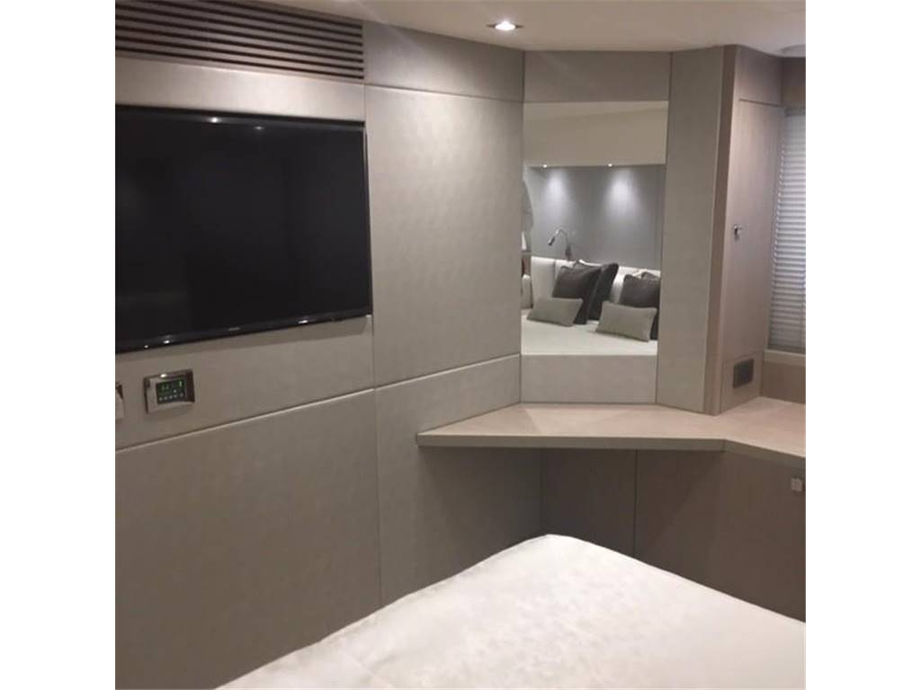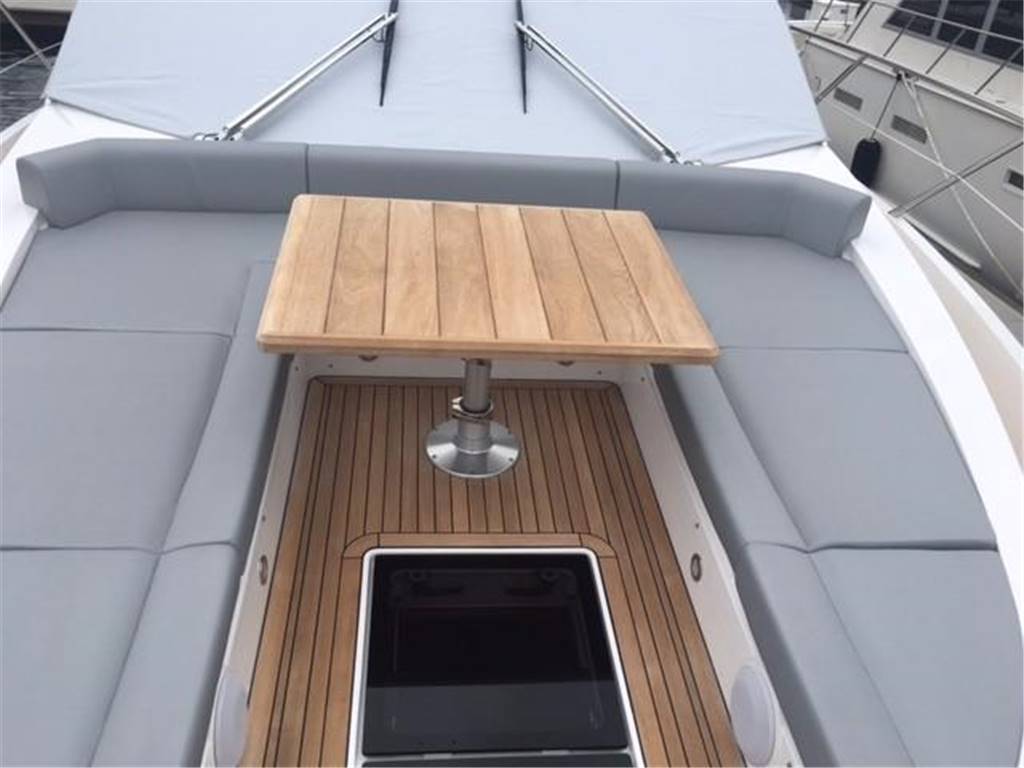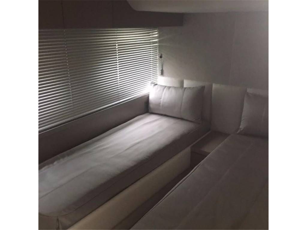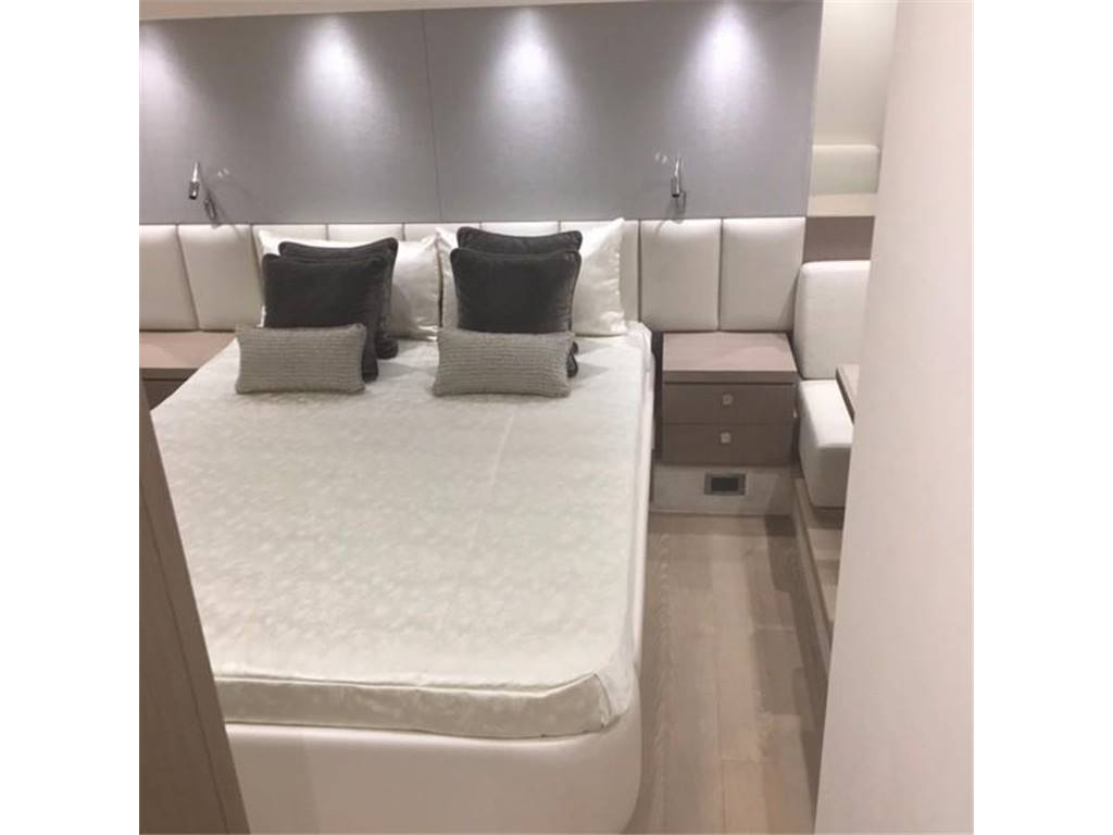 Notas internasNumber of heads: 2 Number of bathrooms: 2 Master: ? Centerline queen berth w/storage below ? Settee w/table ? Hanging locker ? 40" Samsung TV w/Fusion speakers ? En suite head w/shower VIP: ? Centerline double berth w/storage below ? Hanging locker ? Cabinet storage ? 32" Samsung TV w/Fusion speakers ? En suite head w/shower shared w/Starboard guest cabin Starboard Guest Cabin: ? Twin berths w/storage below ? Hanging locker ? 22" LG TV Crew Cabin-Aft: ? Twin berth ? Hanging locker ? Miele washer/dryer ? Head w/shower Notas de la instrumentaciónMain Helm Console? 2 x upholstered helm seats ? Console with black gloss fascia ? Hydraulic steering ? Simrad Chartplotter/GPS Autopilot ? Simrad VHF radio ? Volvo Penta Engine instrumentation w/joystick control ? Simrad Speed and depth instrumentation ? Rudder indicator ? Magnetic compass Mechanical and Electrical Equipment ? Twin Volvo Penta IPS 950 @725 hp each ? 17kW Onan generator ? Sleipner Sidepower bow and stern thrusters ? Fuel filters/water separators to engines ? Fuel filters/water separators to generators ? Manual bilge/automatic flood pumps with high-level alarms ? Automatic bilge and flood pumps with high-level alarms ? Generator exhaust silencers and water separators ? Power steering – hydraulic control steering ? Exhaust gas temperature sensor ? Engine room fire extinguishing system (FM200) ? CCTV cameras-Aft deck and 2 in engine room ? Plumbing and wiring for future watermaker ? Tropic spec A/C ? Water Heater Notas de armamentoSalon:? Settee (S) ? U-Dinette w/table ? 55" Samsung TV on hi/lo ? Radio/CD w/2 x Fusion stereo speakers ? Stainless steel sliding cockpit door to aft cockpit Aft Cockpit ? 3rd Helm station w/Joystick control, Thruster control ? Upholstered seating with storage below ? Teak folding top table on pedestal ? Stern safety gates ? Engine room access hatch ? 24v Overhead lighting ? 24v Low-level lighting ? Teak-laid cockpit and steps ? Radio/CD remote control ? Fusion Cockpit speakers ? Camper enclosure w/isinglass Windows Fly Bridge ? Hard top ? Teak deck ? Twin helm seats ? Volvo Penta IPS engine display and IPS joystick control ? Simrad Autopilot, chartplotter and VHF radio ? Simrad Speed and depth instrument ? Magnetic compass ? Trim tab control ? AFI dual trumpet horn ? Seating w/storage below ? Teak cockpit table ? Sun pad ? Sunbathing area forward ? Wetbar w/Waeco cool box ? Radio/CD remote control/speakers Deck ? 25 kg Delta anchor and 60m galvanized chain ? 24v Electric winch and capstan w/deck and helm controls ? Teak foredeck, side decks, cockpit and swim platform ? Foredeck seating w/teak table ? Foredeck sun pad w/folding back rests ? IMCO navigation lights ? Swim platform swim shower ? Fold-away SS swim ladder ? Hydraulic lifting platform ? Bensenzoni hydraulic passerelle ? Swim platform fold down seat ? Drop down BBQ grill Galley ? On Deck ? Waeco refrigerator/freezer ? Ceramic 4-burner cooktop ? Microwave oven w/grill ? Fisher Paykel dishwasher ? Vitrifrigo wine cooler ? Vitrifrigo Icemaker ? 6 place setting china and flatware ? Cabinet and drawer storage |