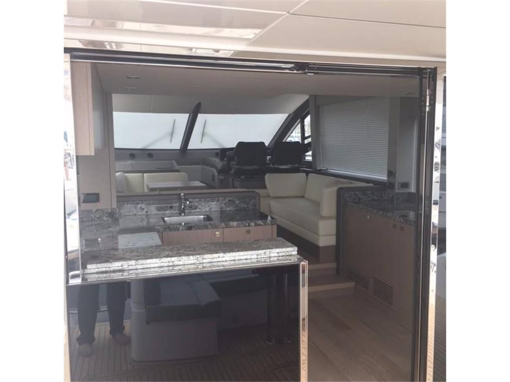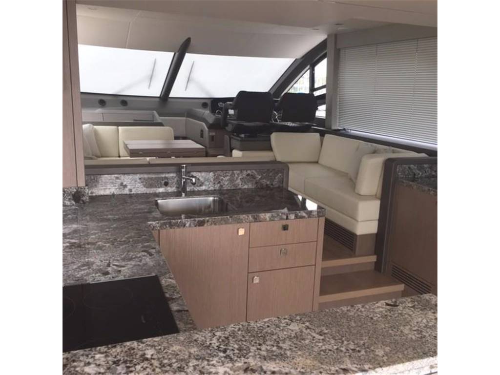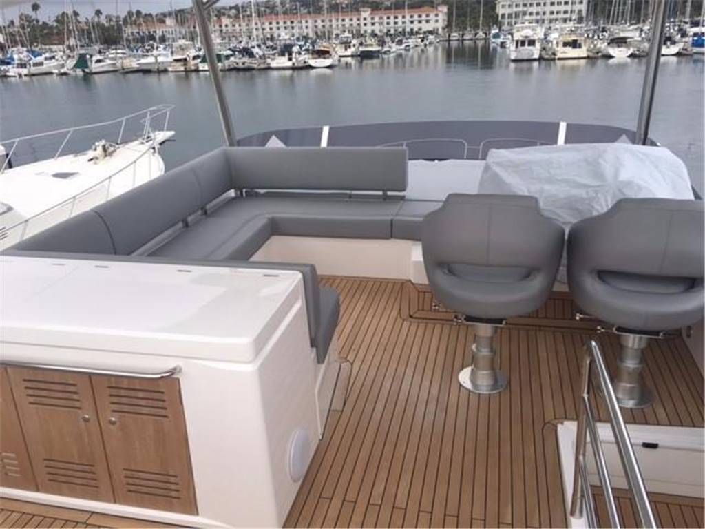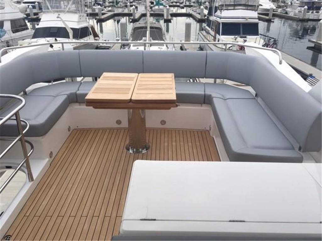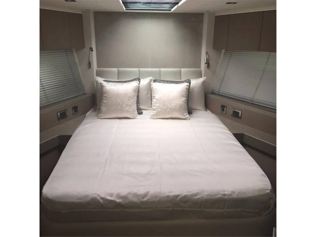 Notas internasNumber of heads: 2 Number of bathrooms: 2 Master: ? Centerline queen berth w/storage below ? Settee w/table ? Hanging locker ? 40" Samsung TV w/Fusion speakers ? En suite head w/shower VIP: ? Centerline double berth w/storage below ? Hanging locker ? Cabinet storage ? 32" Samsung TV w/Fusion speakers ? En suite head w/shower shared w/Starboard guest cabin Starboard Guest Cabin: ? Twin berths w/storage below ? Hanging locker ? 22" LG TV Crew Cabin-Aft: ? Twin berth ? Hanging locker ? Miele washer/dryer ? Head w/shower Notas de la instrumentaciónMain Helm Console? 2 x upholstered helm seats ? Console with black gloss fascia ? Hydraulic steering ? Simrad Chartplotter/GPS Autopilot ? Simrad VHF radio ? Volvo Penta Engine instrumentation w/joystick control ? Simrad Speed and depth instrumentation ? Rudder indicator ? Magnetic compass Mechanical and Electrical Equipment ? Twin Volvo Penta IPS 950 @725 hp each ? 17kW Onan generator ? Sleipner Sidepower bow and stern thrusters ? Fuel filters/water separators to engines ? Fuel filters/water separators to generators ? Manual bilge/automatic flood pumps with high-level alarms ? Automatic bilge and flood pumps with high-level alarms ? Generator exhaust silencers and water separators ? Power steering – hydraulic control steering ? Exhaust gas temperature sensor ? Engine room fire extinguishing system (FM200) ? CCTV cameras-Aft deck and 2 in engine room ? Plumbing and wiring for future watermaker ? Tropic spec A/C ? Water Heater Notas de armamentoSalon:? Settee (S) ? U-Dinette w/table ? 55" Samsung TV on hi/lo ? Radio/CD w/2 x Fusion stereo speakers ? Stainless steel sliding cockpit door to aft cockpit Aft Cockpit ? 3rd Helm station w/Joystick control, Thruster control ? Upholstered seating with storage below ? Teak folding top table on pedestal ? Stern safety gates ? Engine room access hatch ? 24v Overhead lighting ? 24v Low-level lighting ? Teak-laid cockpit and steps ? Radio/CD remote control ? Fusion Cockpit speakers ? Camper enclosure w/isinglass Windows Fly Bridge ? Hard top ? Teak deck ? Twin helm seats ? Volvo Penta IPS engine display and IPS joystick control ? Simrad Autopilot, chartplotter and VHF radio ? Simrad Speed and depth instrument ? Magnetic compass ? Trim tab control ? AFI dual trumpet horn ? Seating w/storage below ? Teak cockpit table ? Sun pad ? Sunbathing area forward ? Wetbar w/Waeco cool box ? Radio/CD remote control/speakers Deck ? 25 kg Delta anchor and 60m galvanized chain ? 24v Electric winch and capstan w/deck and helm controls ? Teak foredeck, side decks, cockpit and swim platform ? Foredeck seating w/teak table ? Foredeck sun pad w/folding back rests ? IMCO navigation lights ? Swim platform swim shower ? Fold-away SS swim ladder ? Hydraulic lifting platform ? Bensenzoni hydraulic passerelle ? Swim platform fold down seat ? Drop down BBQ grill Galley ? On Deck ? Waeco refrigerator/freezer ? Ceramic 4-burner cooktop ? Microwave oven w/grill ? Fisher Paykel dishwasher ? Vitrifrigo wine cooler ? Vitrifrigo Icemaker ? 6 place setting china and flatware ? Cabinet and drawer storage |