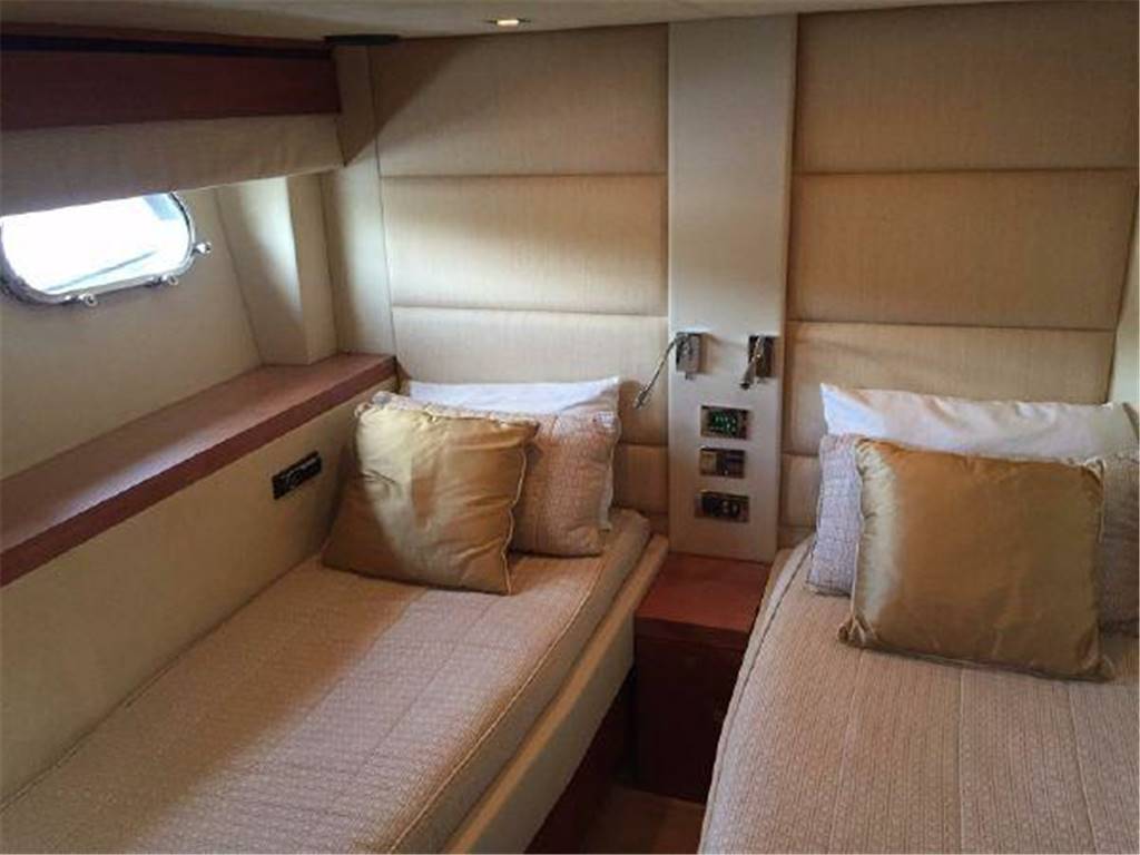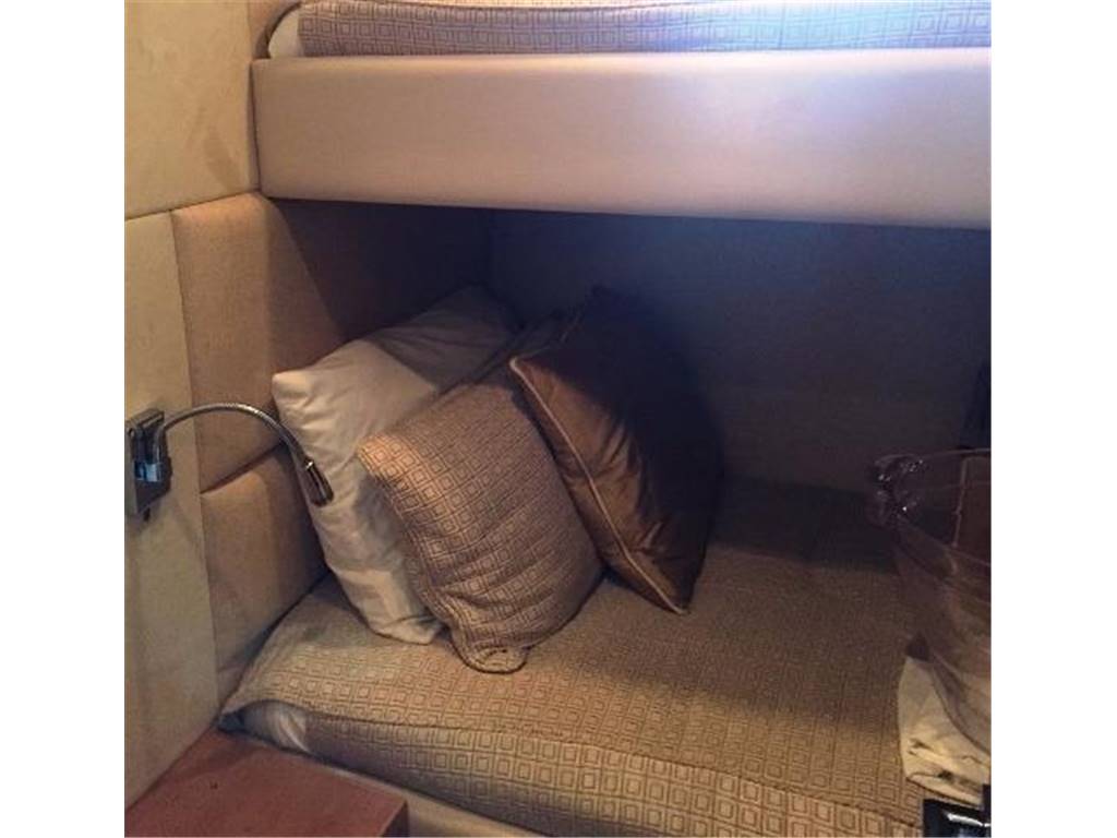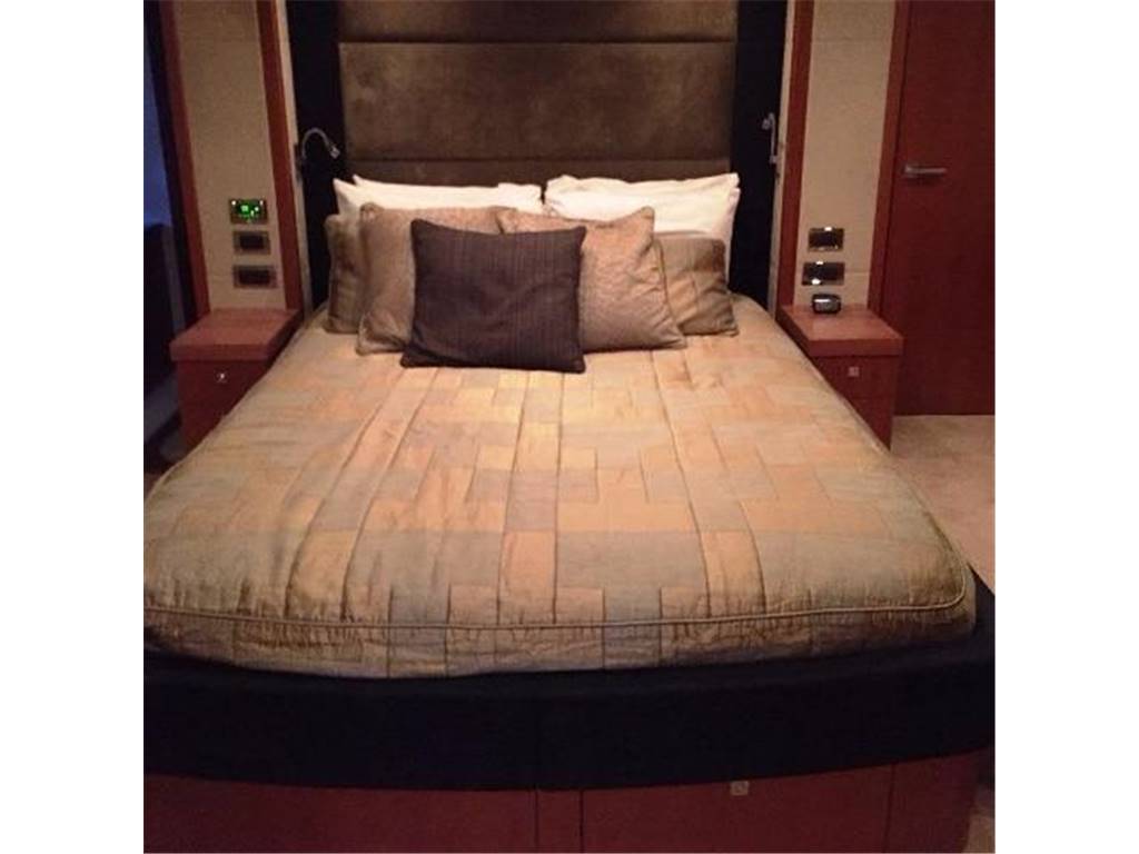 Notas internasNumber of cabins: 4 Number of heads: 3 Master-Amidship: ? Centerline queen berth w/storage below ? Nightstands ? 40" Samsung 3D HDTV ? Samsung Blu-Ray DVD ? SAT TV ? Bose Lifestyle Surround Sound System ? Roman Blinds ? Digital safe ? Bedside and outboard cabinetry ? Sette ? Panoramic windows w/opening portholes ? Walk-in closet w/mirror ? En suite head w/shower VIP-Forward: ? Centerline double berth w/storage and drawers below ? Hanging locker ? Samsung Flatscreen TV w/SAT TV ? Opening portholes w/screen ? Overhead hatch w/screen ? En suite head w/shower Starboard Guest Cabin: ? Twin berths w/storage below ? Nightstand ? Custom Game console AUX plugins ? Flat screen TV w/SAT TV ? En suite head w/shower Port Guest Cabin: ? Over/under twin berths w/storage below ? Bedside table w/drawer ? Hanging locker w/mirror ? Flatscreen TV w/SAT TV ? Shared head & shower w/starboard cabin Crew Cabin or additional guest: ? Double berth ? SAT TV ? Large storage cabinets ? Miele Washer/dryer Notas de la instrumentaciónFly Bridge? Twin Furuno Navnet 3D GPS/Plotter ? Echo sounder and speed log repeaters ? Bow thruster controls ? Custom hardtop w/electric sunroof ? 2 x Helm chairs ? Canister mounted life raft ? Duplicate engine controls & instrumentation ? Wet bar w/refrigerator, ice maker & Gaggenau grill ? Teak deck ? Settee w/table ? Sunpad w/folding back rest Pilothouse ? 2 x Bensenzoni adjustable leather helm seat ? FLIR Night Vision Thermal Camera ? Rearview LED Camera ? 2 x Furuno NavNet 3D Radar/Plotter ? Volvo dual station color displays ? Volvo Penta DPS Dynamic positioning w/GPS transponder & low speed joystick function ? Simrad AP28 autopilot ? Raymarine VHF ? Twin Kahlenberg horns ? Sanchin Searchlight ? Ritchie compass ? Hydraulic opening side door ? Raymarine depth sounder ? Electric speed & Rudder indicator ? Analog & digital instrumentation ? Trim Tab controls Mechanical & Electrical ? 24v Bow Thruster ? Hydraulic SS Trim tabs ? IPS Drives ? 8 x Underwater lights ? 2 x Automatic bilge pumps ? Automatic flood pump ? Manual bilge pump ? 21.5kW Cummins Onan generator ? 6 x 24v Engine start batteries ? 6 x 24v House batteries ? 2 x 12v Gen start batteries ? 24v Battery Charger ? 12v Battery Charger ? Extra capacity water heate ? Glendinning Cablemaster Notas de armamentoSalon? Satin cherry wood interior ? Tattletale alarm system ? 55" Samsung flat screen 3D HDTV ? SAT TV & Samsung Blu Ray ? Bose DVD Lifestyle Surround Sound ? Granite vanity countertops ? Roman blinds ? Hardwood Sole ? Additional Fridge & Ice Maker in salon ? Dining table w/seating for 8 ? Premium leather settees ? Coffee table ? Liquor cabinet ? iPod radio for external speakers Galley ? Granite countertops ? Miele dishwasher ? Refrigerator ? Freezer ? Upgraded 2nd refrigerator ? Ceramic cooktop ? Microwave ? 6 x Dinnerware & cutlery ? Cabinet & drawer storage Deck ? 24v Winch & capstan w/deck and cockpit controls ? 24v Stemhead roller & anchor stop ? Delta anchor & 90m galvanized chain ? Custom mounting brackets installed on bow railing for paddleboard ? Fresh water deck wash fore & aft ? Gunwale lighting ? EPIRB ? Dual boarding ladder metal plate installations behind fiberglass ? Dinghy inflator & socket ? Hydraulic teak swim platform w/flush mounted chocks for tender ? Hot & cold swim shower ? Fold-away SS swim ladder Cockpit & Bow ? Boarding ladder mounting & door (P & S) ? Teak telescopic folding table w/4 chairs ? Exterior Sunbrite TV ? Upgraded electric BBQ grill ? Fusion marine speakers ? Molded stairway to fly bridge ? Transom storage locker ? Upholstered settee ? Teak cockpit & steps ? Foredeck Sunpad w/folding backrests ? Fusion speaker system-foredeck ? Bow hose bib ? Sunbrella canvas covers |