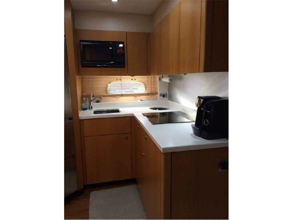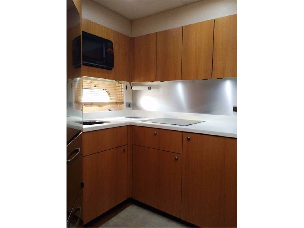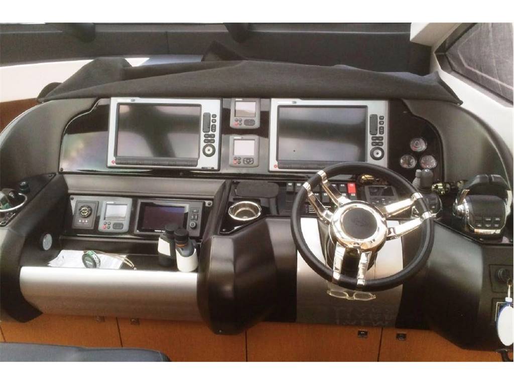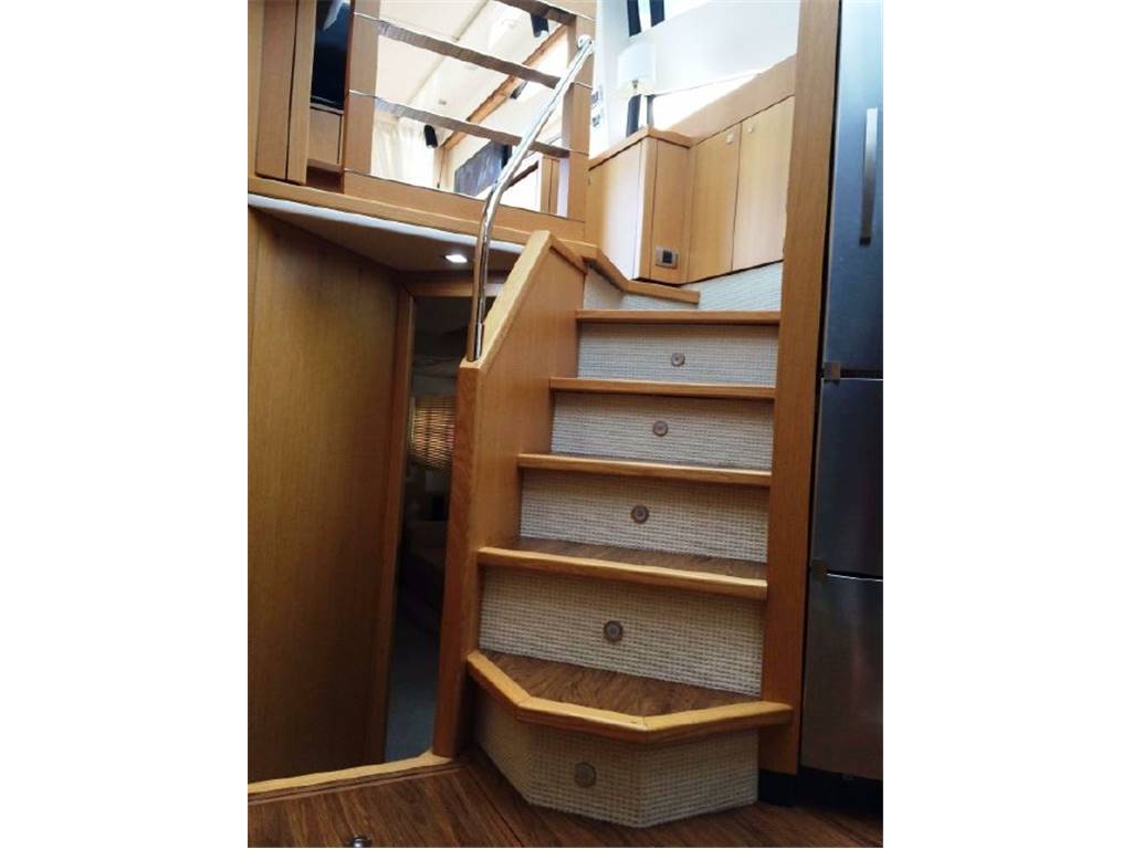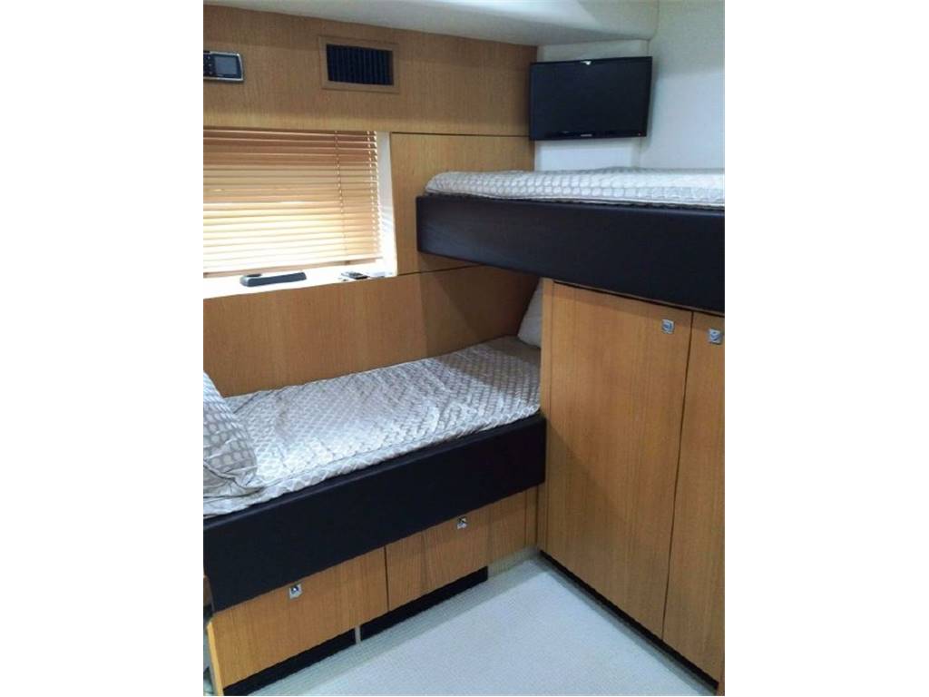 Notas internasNumber of cabins: 3 Number of heads: 3 Master Stateroom ? Carpeted sole ? Vinyl upholstered overhead panel with finished veneer inserts ? Overhead recessed lighting ? Soffit and accent lighting, port and starboard ? Alcove with portlights, two dead lights, and drop shades, port and starboard ? Island berth with: ? Upholstered base ? Custom mattress cover ? Pillows ? Upholstered aft bulkhead ? Soffit above berth head with recessed lighting ? Nightstands with glass tops, port and starboard ? Mounted table lamps, port and starboard ? Reading lamps, port and starboard ? Settee with end table, port ? Desk/vanity with mounted stool, starboard ? Bose 3-2-1 system ? Mirrored vertical panel with inlaid mirror, port and starboard of berth ? Hanging locker with three mirrored doors, port forward ? Two Alpine speakers ? Bose stereo system with two speakers ? Sony AM-FM/CD/DVD player ? Samsung TV ? 1A10BC dry chemical fire extinguisher Master Head ? Vinyl tile sole ? Mica covered shipside panels ? Vinyl upholstered overhead panels and recessed lights ? Mirrored forward bulkhead ? Tecma marine head ? Vanity with glass counter and backsplash and custom sink and faucet ? Designer accessories ? Linen locker, outboard ? Portlight with Ocean Air drop shades ? Shower enclosure with: ? Mica covered interior ? Upholstered overhead ? Recessed lights ? Bench seat ? Handheld/fixed showerhead VIP Stateroom ? Carpeted sole ? Finished veneer cabinetry ? Upholstered vinyl overhead panels and shipsides ? Alcove with portlights and drop shades, port and starboard ? Overhead hatch, centerline ? Smoke sensor ? Recessed speakers ? Overhead storage cabinets, port and starboard outboard ? Soffit with accent lighting, port and starboard ? Air conditioning control ? Island berth with: ? Custom upholstered base ? Two drawers ? Upholstered panels, forward ? Two reading lights ? Soffit with four recessed lights, forward ? Samsung TV ? Overhead recessed lights ? Stone countertop, port and starboard ? Locker with four shelves and mirrored door ? Hanging locker with mirrored doors ? Air conditioning unit below berth ? Sony multi-disc player ? Mounted lamps, port and starboard forward VIP Head ? Stone tile sole ? Vinyl overhead panels with recessed lights ? Mica covered shipside panels ? Tecma marine head ? Portlight ? Ocean Air drop shade ? Medicine locker with two mirrored doors ? Vanity with: ? Glass top ? Custom sink ? Custom faucet ? Single drawer ? Designer head hardware and accessories ? Vented blower ? Shower enclosure with: ? Seat ? Glass top ? Overhead recessed light ? Fixed/handheld shower ? Glass bi-fold shower door with sea latch Mid Guest Stateroom ? Carpeted sole ? Vinyl upholstered overhead with recessed lights ? Two overhead recessed Alpine stereo speakers ? Vinyl upholstered shipside panels ? Air conditioning control ? Upper and lower berths with: ? Custom upholstered berth frame ? Hanging locker ? Upholstered headboards ? Samsung TV ? Adjustable reading lights ? Sony AM-FM/CD/DVD player ? Alcove with portlight and drop shade, outboard ? Smoke sensor Crew Cabin and Head ? Entrance via swim platform ? Six overhead lights ? Rubber non-skid sole ? Marine Air air conditioning control ? Single berth with mattress ? Four lights above berth Crew Head: ? Non-skid sole ? Three overhead lights ? Tecma marine head ? Corian counter with sink and hot/cold faucet ? Showerhead on hose with wall mount ? Mirror on entrance door ? Blower Notas de la instrumentaciónHelm• Hydraulic power steering • Full analog engine instrumentation • 2 x Raymarine E140 displays w/AIS • Raymarine Open array radar • Raymarine GPS • Autopilot • Chartplotter • Electronic speed log • Depth sounder • Rudder indicator • Water tank gauge • Fuel tank gauge • VHF radio • Humphree Automatic trim tab active ride controls • Single lever engine controls • Compass Electrical • Slow speed generator with underwater silent exhaust and sound shield • AC dockside connection • Galvanic isolator • 24v and 12v DC electrical system • 6 x 24v Engine start-up batteries • 4 x 24v House batteries • 2 x 12v Generator start-up batteries • 24v & 12v Battery chargers • Water heater • LED interior lighting throughout • Ocean LED underwater lights Mechanical • Twin Volvo IPS 1200 @900 hp each • Bow Thruster • Humphree automatic trim tabs • Twin Racor fuel filters on each engine • Fuel polishing system • Automatic fire extinguishers • Engine room and forward bilge flood alarms • 2 x automatic bilge pumps • 2 x automatic flood pumps • 4 x 24v Exhaust fans Notas de armamentoAft Cockpit• L-Settee w/storage below and folding table • Large sun pad aft • Teak deck • Stern safety door • Cockpit speakers • Wet bar w/hot and cold water, cool box, ice maker, storage locker and grill • 24v Overhead lights • 24v Low-level courtesy lights • Engine room access hatch Galley • 3 Burner ceramic cooktop • Full size refrigerator/freezer • Microwave oven • Hot and cold water • Cabinet & drawer storage • 6 Place dinnerware & cutlery • LVP wood sole • Hand-held fire extinguisher • First aid kit Deck • Stainless steel bow roller with anchor stop • Stainless steel bow plate • Stainless steel Delta anchor and 60m chain (galvanized) • Electric winch and capstan with deck and cockpit controls • Fore deck sun pad • Bensenzoni passerelle • Teak laid swim platform w/hydraulic lift • Swim shower • Solar reflective sun roof • Solar reflective salon windows |