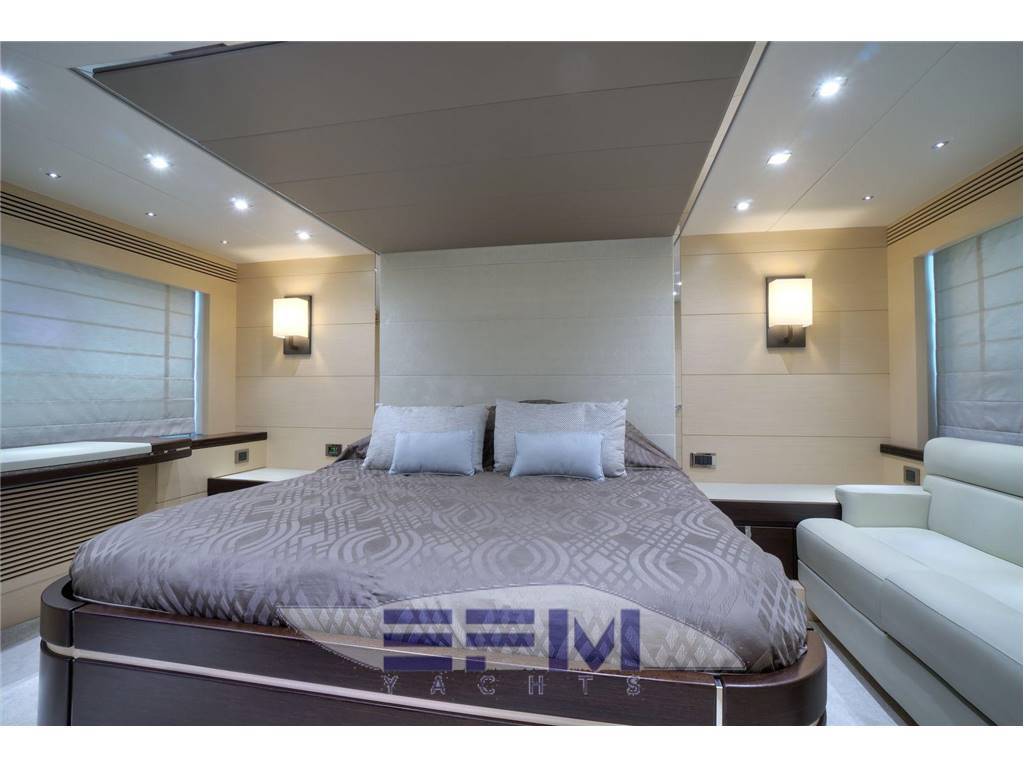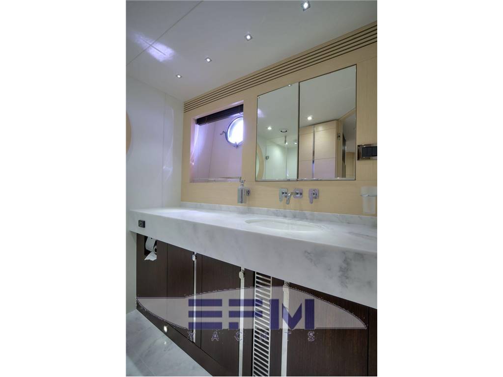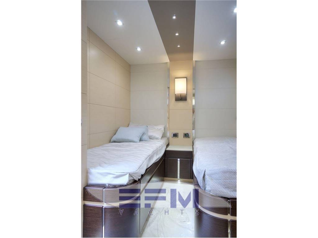 Notas internasNumber of cabins: 3 Number of heads: 3 3 Cabins each with en suite head and shower. Galley down Master Cabin-amidship: ? Centerline King berth w/storage below ? Large walk in closet ? Settee ? Vanity w/stool ? Samsung 32" LED TV ? Harmon Kardon CD/DVD/Blu-Ray/Radio ? En Suite head w/stall shower VIP Cabin-Forward: ? Centerline queen berth w/storage below ? 2 x Hanging lockers ? Samsung 32" LED TV ? Harmon Kardon CD/DVD/Blu-Ray/Radio ? Cabinets on port & starboard bulkheads ? En Suite head w/shower Starboard Guest Cabin: ? Twin berths w/storage below ? Hanging locker ? Nightstand ? Samsung 22" LED TV ? Harmon Kardon CD/DVD/Blu-Ray/Radio ? En Suite head w/shower Crew Quarters-Aft: ? Twin berths ? Head w/shower ? Splendide Washer/Dryer Notas de la instrumentaciónMain Salon and Helm? U-Settee w/coffee table aft ? Dining area w/table forward, opposite helm ? Storage cabinets ? U-line Wine Cooler ? Samsung 55" TV can be raised and lowered ? Helm station (S) ? 2 x Helm seats ? Navigation console & chart area ? Simrad AC12 Autopilot ? Simrad Chartplotter/GPS/Radar ? Simrad AIS w/GPS ? Simrad speed & depth indicators ? Simrad VHF radio ? Simrad Go-Free Wireless Bridge Engine and Mechanical Equipment ? Twin MTU 8V 2000 M94@1270hp each ? 21.5kW Onan generator ? Sleipner Stabilizers ? Sleipner Bow Thruster ? Automatic bilge pumps ? Engine room fire extinguisher system ? Plumbing & wiring available for watermaker installation Notas de armamentoFlybridge? Teak deck ? Helm station (P) ? Simrad Chartplotter ? Simrad autopilot ? Simrad Speed & depth indicators ? Simrad VHF ? AFI dual trumpet horn ? Twin helm chairs ? Large sunpad & bench seating opposite helm ? Bimini top ? Large U-settee w/teak table ? Wet bar w/Vitrofrigo icemaker, Cool box, Kenyon Electric BBQ ? Sport Bridge zone performance audio w/4 Sonance speakers Cockpit ? Teak Deck ? Large U-Settee w/teak table ? Large Sunpad ? Waeco refrigerator ? Stairway to Flybridge Galley ? White Oak & Wenge cabinetry ? Satin Wenge sole ? Granite countertop ? Plastimo 3 Ring Ceramic cooktop ? Vitrifrigo refrigerator w/2 freezer drawers ? Sharp microwave ? Miele Slimline dishwasher Deck ? Lewmar SS 40kg Delta anchor ? 60m Galvanized chain ? Hydraulic lift platform ? Tender recovery roller system ? 4 x White Aqualuma underwater lights ? Foredeck sunpad w/folding back rests ? Fresh water wash down outlets: Swim platform, FB, Foredeck ? Williams RIB Turbojet 325 tender |