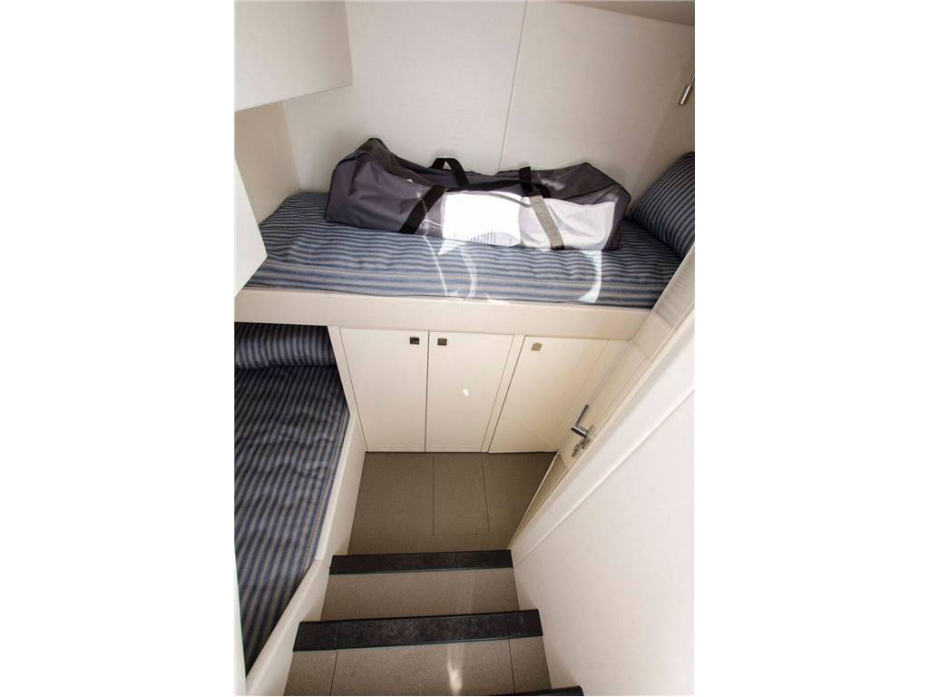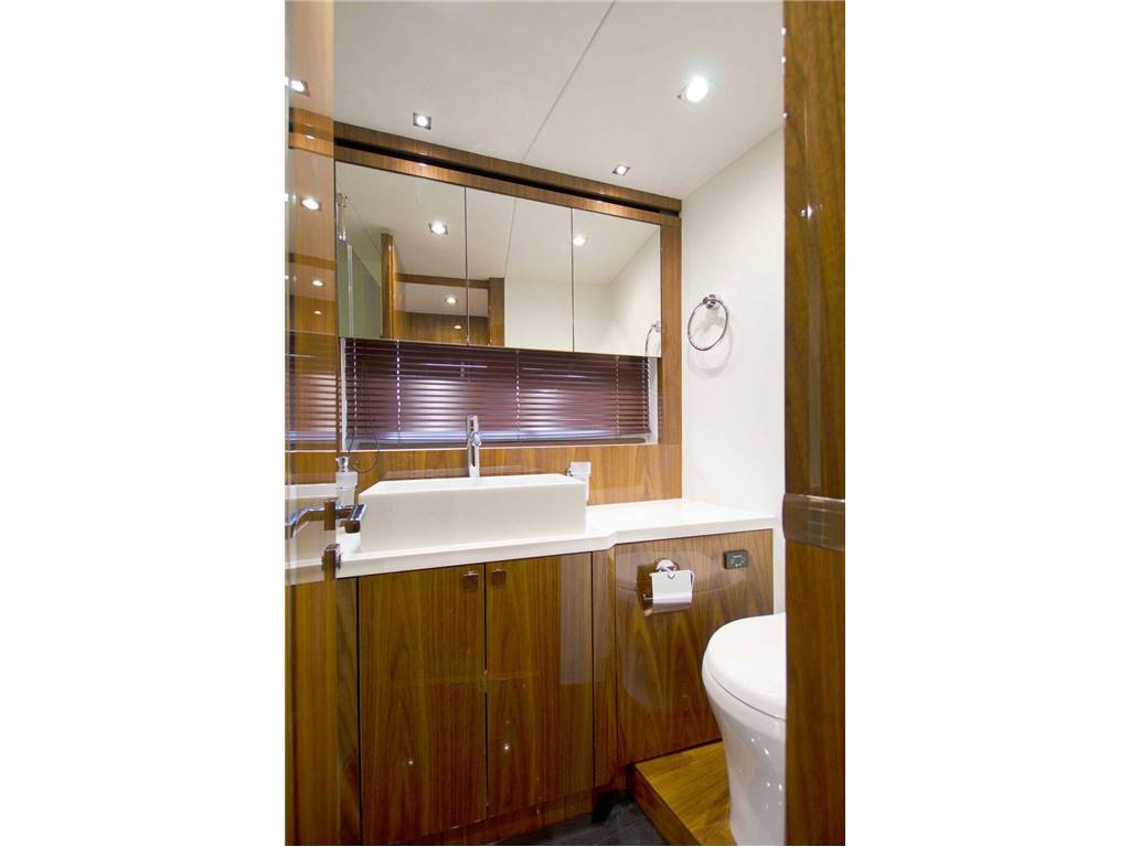 Notas internasNumber of cabins: 3 Number of heads: 3 Master-Full Beam Amidship ? King berth w/storage below ? Cabinet and drawer storage ? 2 x reading lights 24v ? Nightstands ? Large walk-in closet ? 2 x large windows with opening portholes, screens and blinds ? Settee ? Vanity w/stool ? Samsung 32” TV ? Harmon Kardon Blu-ray/DVD/CD player with speakers ? En suite head w/shower VIP-Forward ? Centerline queen berth w/storage below ? Drawer in base-end ? 2 x reading lights 24v ? Outboard shelving and cabinets ? Overhead bedside cabinets ? Hanging locker with mirrored panel ? Overhead lights LED 24v ? 2 x opening portholes w/screens ? Deck hatch with blind and screen ? Skylight ? 2 x double AC sockets ? Door to shower room ? Fitted carpet ? Air conditioning ? Samsung 32” TV ? Harmon Kardon Blu-ray/DVD/CD player with speakers ? En suite head w/shower Starboard Guest Cabin ? Twin berths w/storage below ? 2 x reading lights 24v ? Hanging locker ? Overhead lighting LED 24v ? Opening porthole with screen and blinds ? LG 22" TV ? Harmon Kardon Blu-ray/DVD/CD player with speakers ? En suite head w/shower Crew Cabin-Aft ? Over/under twin berths ? Hanging locker ? Splendide washer/dryer ? En suite head & shower Galley ? Plastimo 3-burner ceramic touch-control cooktop and Bosch exhaust fan ? Vitrifrigo refrigerator w/2 freezer drawers ? Sharp Microwave convection oven ? Miele dishwasher ? Cabinet and drawer storage ? 8 place dinnerware & cutlery settings ? First aid kit Notas de la instrumentaciónInterior Helm Console? Twin helm seats ? Navigation console with chart area ? Hydraulic power steering ? Xenta Smart stick docking system ? Analog engine instrumentation ? Simrad Chart plotter with GPS ? Simrad Halo Radar open scanner ? Simrad Autopilot ? Simrad AIS Module w/GPS ? Speed and depth instrumentation ? Simrad VHF radio with DSC ? Rudder indicator ? Water tank gauge ? Fuel tank gauge ? Trim tab controls ? Magnetic compass ? Horn Mechanical Equipment ? Twin MAN V8 @1200 hp each ? Sleipner Stabilizers ? Sleipner bow and stern thrusters ? Trop spec A/C ? Fuel filters/water separators to engines and generators ? Power steering – hydraulic control steering ? Garage door and trim tabs hydraulic control unit Electrical ? 21.5kW Onan generator ? Plumbing and wiring for watermaker ? 8 x 24v engine batteries ? 4 x 24v house batteries ? 2 x 12v generator batteries ? 24v Battery charger ? 12v Battery charger ? Water heater ? 16 x Low level LED side deck lights ? Stern docking lights ? 4 Lumishore Underwater lights ? 24v hand light and cable Notas de armamentoFly Bridge? Bimini Top ? Sport Bridge Console Navigation ? 2 x Chartplotter w/multi-function displays ? Simrad Autopilot ? Simrad speed and depth display ? Simrad 2nd station VHF ? Sanshin searchlight ? Xenta Smart stick docking system ? Esthec Decking ? Wet bar w/Kenyon BBQ grill, Vitrifrigo Ice Maker, Coolmatic ice chest ? U-Settee w/teak table ? Sunpad Cockpit ? Esthec decking ? Stern safety door ? 4 x Fusion speakers with CD remote ? Upholstered settee w/storage below ? Teak cockpit table ? Waeco Refrigerator ? Large stern sunpad ? 24v Overhead cockpit lights ? 24v Low-level courtesy lights ? Engine room access hatch ? Fly Bridge access stairs Salon ? Observation area dinette seats up to 8 ? U-settee w/cocktail table (S) ? Samsung 55" TV on Hi/Lo system ? Bose Life style surround sound ? Pioneer Blu-ray ? Fusion CD/radio w/Bluetooth ? U-Line wine cooler ? AirPort Express ? Drinks cupboard ? Stainless steel sliding door to cockpit |