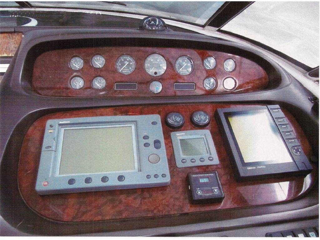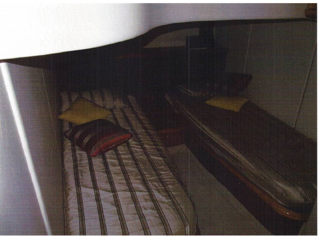 Notas internasCabine matrimoniali/Double cabins 1 Cabine doppie/twin cabins 1 doppia letti in piano Cucina/Galley in dinette Bagni/Bathrooms 2 Materiale interni/ Interior material ciliegio + pavmento legno Notas de la instrumentaciónVHF Shipmate RS 8400Ecoscandaglio/Ecosounder Raymarine ST 60 GPS Raymarine RC 620 plus Pilota automatico/Autopilot Raymarine St 6001 Radar Simrad Notas de armamentoImpianto stereo/ Stereo set siImpianto tv/ tv set si + 3 tv Passerella/Gangway idraulica Besenzoni Elica di prua/Bow thruster si Raddrizzatore/Rectifier si Gruppo elettrogeno/Generator si maggiorato Aria condizionata/Air conditioning si Riscaldamento/Heating si Frigorifero/Refrigerator 2 Tendalini sole/ Sun awning si completi Cuscini sole/ Sun cushions poppa prua Eliche di rispetto/ Spare prop. si 4 pale bronzo |