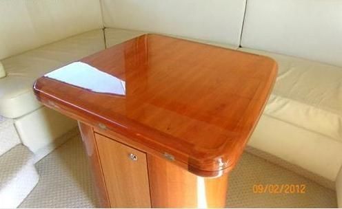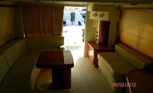 Notas internas3 Cabinas 2 medio baños cabina con cama de matrimonio y baño camarote a popa de la cabina VIP con camas apiladas dÃa baño gran comedor con pulido CHERRY madera grandes sofás con TV móvil a MURATATA comedor con mesa grande y cocina por debajo de la cubierta con refrigerador horno de quemadores de vitrocerámica
