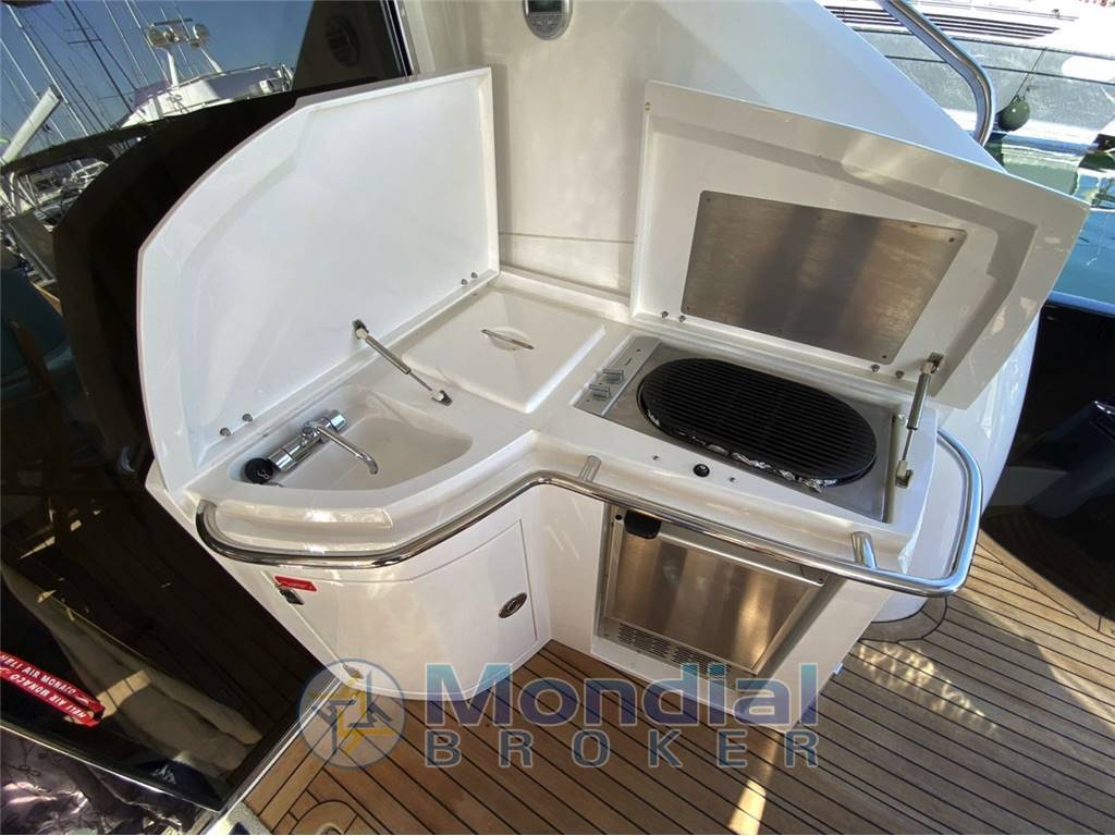 Notas internasThe captain's cabin is fully equipped. The flybridge floor is finished with teak wood, an additional bimini top is mounted. Notas de la instrumentaciónRaymarine navigation (1 chartplotter per post) + open type radarNotas de armamentoOpt.- The hull is dark blue, the interior trim is matte walnut. - Seakeeper 6 stabilization system installed - Generator 17 kw Kholer - Bow and stern thrusters - Hydraulic swimming platform - Raymarine navigation (1 chartplotter per post) + open type radar - Teak on the flybridge - Bimini top - New Fusion audio equipment everywhere, - TV in saloon and cabins - Wine cooler - Dishwasher - wet bar in the cockpit (fridge + ice maker + barbecue) - Fridge in wetbar on flybridge - Watermarker – Tender Williams 285 tender |