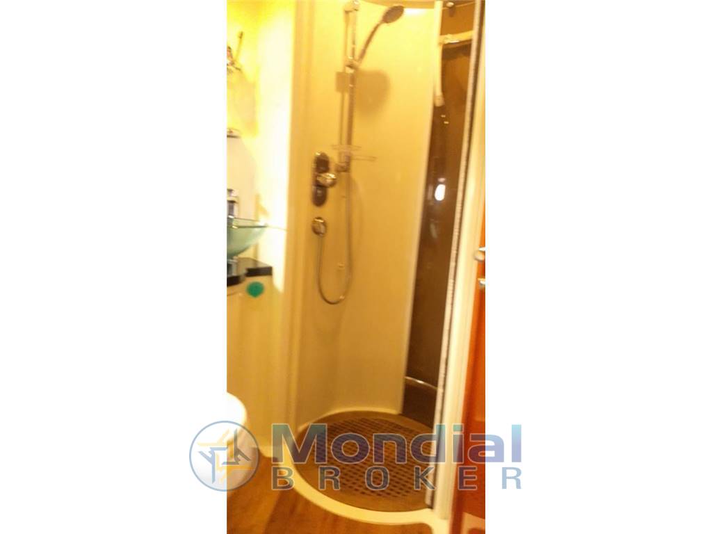 Notas internasCabina ospiti con letti in piano; Cabina ospiti con letti a castello; Bagno ospiti. Wc marini elettrici. Cucina con piano in vetroceramica, Nr 3 frigoriferi (2023). Refit totale interni 2022/23: Riverniciatura di tutti i legni, Moquette nuova, Pareti in tessuto lino bianco Loro Piana, Nuovo piano cucina, Divano in pelle 2022. Notas de la instrumentaciónVHF/DSC, 2 GPS/Plotter cartografici Raymarine Axiom 12" (nuovi 2023), Echo, Log, Radar 3D (2023) + Antenna, Autopilota, Anemomentro, AIS, Angolo di barra, Bussola; Strumentazione completa controllo MAN; Antenna sat Raymarine 2019, Conexus 5G (2023) per amplificare segnale web inserito nel 2 Dome; Telecamera in sala macchine Raymarine (2023). Allarmi motori e sentine. Faro orientabile, Tromba.Caricabatterie Mastervolt principale + Caricabatteria Sterling di rispetto montato in parallelo, Caricabatterie Quick per generatore, Generatore Kohler 9Kw, Prese 220V e presa acqua in banchina. Notas de armamentoSalpancora 1500W, Contacatena Quick 2023, Ancora Delta 40kg con catena 12mm(2022), Winch di tonneggio a poppa.Pompa di sentina automatica + elettrica, Serbatoio e Impianto acque nere, Dissalatore Idromar 150lt/h, Aria condizionata reversibile, Autoclave, Boiler, Tv dinette e cabine (2022) con decoder Sky, Impianto stereo wifi Sonos 2000W con altoparlanti, Ice Maker. Cuscineria esterna completa, Cuscineria prendisole 2023, Copripozzetto, Oscuranti, Zanzariere, Teli copriconsolle, Doccia esterna, Tavolo pozzetto, Lavandino/BBQ/Grill/Frigo pozzetto, Scaletta bagno, Passerella idraulica con telecomando (sbarcata 2023, riverniciata, pezzi motorizzati ed elettronica sostituiti), Tender Geniuss 330 cn f.b. Suzuki 30hp (2021) e tubolari nuovi 2022, Verricello hangar (2023), Nuova scritta nome illuminata a LED, 4 luci subacquee RGB (2023). |
