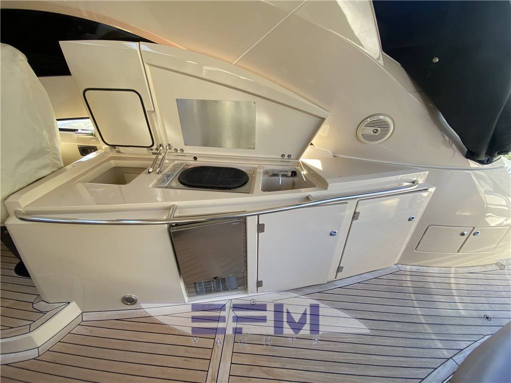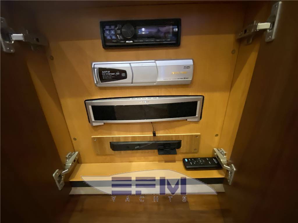Notas de armamentoLights in the cockpit - bow thruster - double fridge - Galley with sink , grill and icemaker in cockpit - safety equipment x 8 people - complete set of kitchen linens and spare cabins - courtesy lights - teak cockpit and bath platform - hydraulic gangway - aft mooring winch - complete canopy closure - sunbathing in white ski - Delta anchor with chain plus - Fenders - reverse cycle air conditioning hot and cold - electrics WC Batteries charger - Generator Kohler - Stereo cd Sony + DVD - Opening hard top - swimming ladder - black water system - aft shower with hot and cold water - tender garage - electric gangway - Teak platform new 2022 -