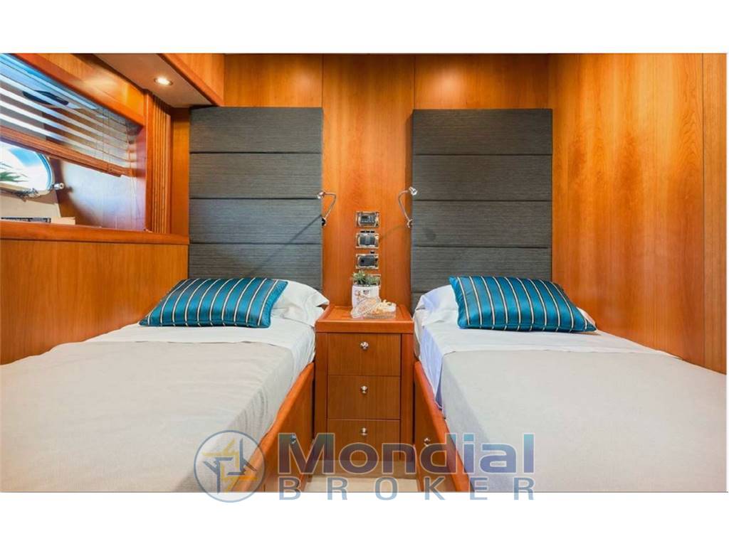 Notas de armamentoDissalatore 450lt/h, Pompa sentina manuale+automatica, Aria condizionata, Wet bar in salone con icemaker,frigo e frigo vini. Lavasciuga Miele, Lavastoviglie, Impianto antincendio. Tv 52"in salone, Tv 24"nelle cabine doppie, Tv 32"in cabina Vip; Sistema surround Bose Hifi in cabina armatoriale e Vip, Imp.audio surround a prua,salone e ponte di poppa, con altoparlanti su piattaforma bagno. Doccia esterna caldo/freddo, 2xSalpancore elettrici Muir 4500, 2xAncore 113kg, 2xWinches ormeggio elettici .a poppa, Jacuzzi e prendisole a prua, Tavolo pozzetto in teak, Garage con piattaforma idraulica, Passerella idraulica, Scaletta bagno, Tender Williams 445 (2013). Nr 2 Zattere da 8b persone.