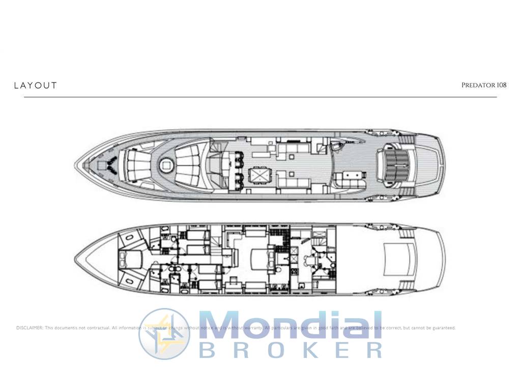 Notas internasCabina armatoriale a tutto baglio con ampio bagno e spogliatoio. Cabina VIP con letto matrimoniale e bagno con wc elettr. Due cabine ospiti con letti gemelli (una convertibile in matrimoniale) e bagno. Due cabine equipaggio con bagno.