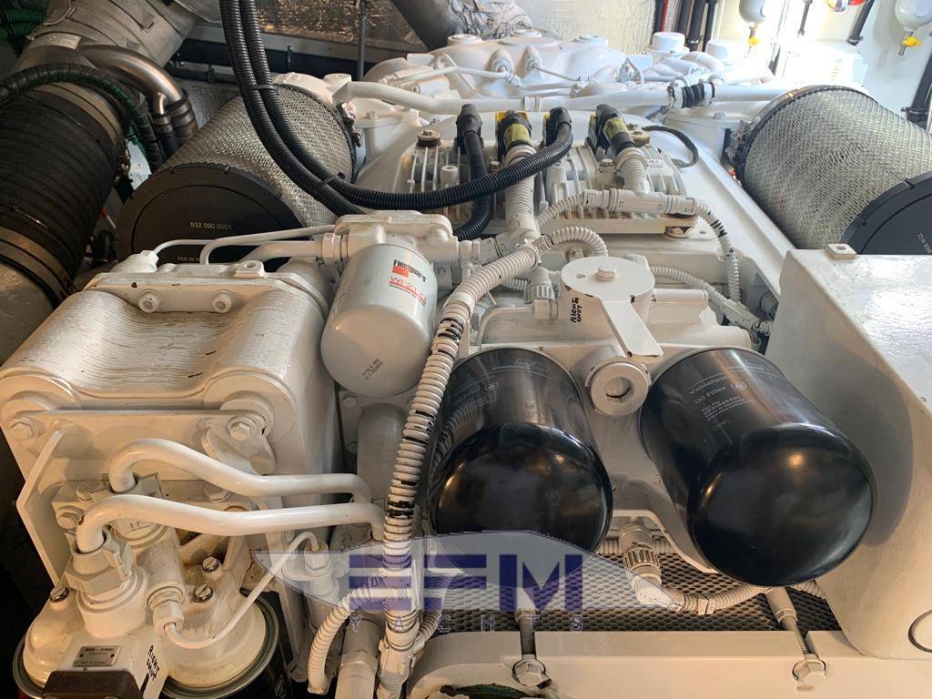 The interior is in brand new condition, she really is faultless. All the exterior upholstery is good and the teak deck has no signs of wearing down. The blue hull band most importantly has no signs of sun damage. The engine room is very clean with the fact of very low engine hours has been noted. Serviced by MTU annually. Boat lifted out the water for 1 month every year to dry out then anti-fouled and polishing. |