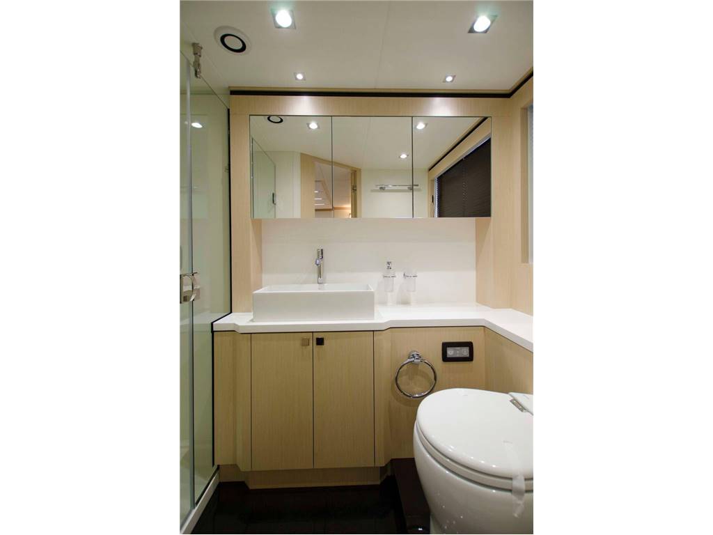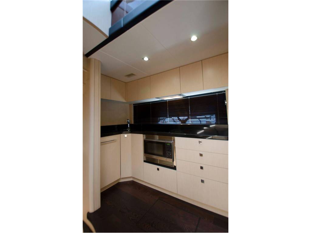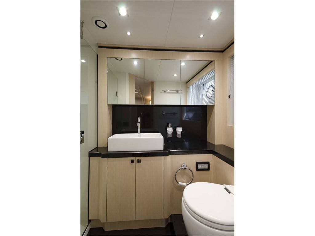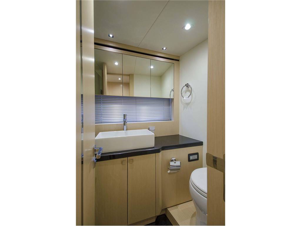 Notas internasNumber of cabins: 3 Number of heads: 3 Master aft stateroom-Full beam-Amidship • King berth w/storage below • Cabinet and drawer storage • Vanity • 2 x 24v reading lights • 2 x Nightstands • Walk-in closet • 2 x large windows with opening portholes, screens and blinds • Settee • Air Conditioning • Samsung 32” TV • Harmon Kardon Blu-ray/DVD/CD player with speakers • En suite head w/shower VIP stateroom-Forward • Queen berth w/storage beneath • Drawer in base-end • 2 x 24v reading lights • Outboard shelving and cabinets • Hanging locker w/full length mirror • 24v LED Overhead lights • 2 x opening portholes with screens • Port-light blinds • Deck hatch with blind and screen • Sky-light • Fitted carpet • Air Conditioning • Samsung 32” LED TV • Harmon Kardon Blu-ray/DVD/CD player with speakers • En suite head w/shower Guest Cabin-Starboard • 2 x Twin berths w/storage below • 2 x 24v reading lights • Hanging locker • 24v LED Overhead lighting • Opening porthole with screen and blinds • Fitted carpet • Air Conditioning • Samsung 22” LED TV • Blu-ray/DVD/CD player with speakers • En suite head w/shower Crew Cabin-Aft • Twin over/under berths • Miele Novotronic washer/dryer • En suite head/shower Notas de la instrumentaciónHelm• Twin helm seats • Navigation console with chart area • Hydraulic power steering • Simrad Go-Free WiFi bridge control • 2 x Simrad touch screen displays • Simrad Radar open scanner • Simrad GPS • Simrad Autopilot • 2 x Simrad speed and depth indicators • Simrad RS90 VHF • Simrad AIS module w/GPS • Sanshin Searchlight • Rudder indicator • Trim tab controls • Single lever electronic engine controls Mechanical • Twin MAN V12's @ 1550 hp each • Sleipner bow & stern thrusters • Fuel filters/water separators to engines • Fuel filters/water separators to generators • Automatic bilge and flood pumps with high level alarms • Plumbing and wiring for watermaker • Garage door and trim tabs hydraulic control unit • Lifting platform hydraulic control unit • Air intakes fitted with emergency shut down flaps (automatically operated) • Engine room fire extinguishing system (FM200) • Portable C02 fire extinguisher Electrical • 21.5kW Onan generator • Galvanic isolator • 24v and 12v DC electrical system w/full circuit breaker protection • 8 x 24v engine batteries • 4 x 24v domestic batteries • 2 x 12v generator batteries • Alternator split charging system • 24v Battery charger • 12v Battery charger • Water heater • 4 x Lumishore LED Underwater lights Notas de armamentoAft Cockpit• Full isinglass and canvas enclosure • 4 x Fusion waterproof speakers w/CD remote • Wet bar sink with hot and cold water, Coolmatic Ice chest, Vitrofrigo ice maker, and Ceramic fluted • Large U-Settee w/storage below & teak table • Large sun pad • 24v Overhead cockpit lights • 24v Low-level courtesy lights • Engine room access hatch • Electric Canopy Salon & Dining • Satin finish White Oak w/Gloss finish Wenge • Satin finish Wenge sole • U-Settee w/custom coffee table • Observation area w/dinette seating for up to 6 • Storage beneath dinette settee • Samsung 55” LED TV on Hi-Lo • Bose surround sound system • Pioneer Blu-ray • Fusion CD/Radio • Liquor cabinet • U-Line wine cooler • 24v LED Overhead halogen lighting • Stainless steel sliding door to cockpit Galley • Sink and drainer • Plastimo 3 burner ceramic cooktop w/touch control and Bosch exhaust fan • Vitrifrigo refrigerator w/2 freezer drawers • Microwave/convection oven • Miele Novotronic dishwasher • Cabinet and drawer storage • 8 place settings dinnerware and cutlery Deck • Esthec teak Swim platform, Cockpit • Stainless steel bow roller w/anchor stop • Stainless steel bow plate • Lewmar 40kg Delta anchor and 90m chain (galvanized) • Lewmar winch and capstan with deck and Interior helm controls • Foredeck Sunpad w/folding back rest • 4 x Fusion waterproof speakers • Hydraulic passerelle • Fresh water deck wash outlets fore and aft • Hydraulic lift platform • Tender recovery roller system for Williams RIB Turbojet 325 |