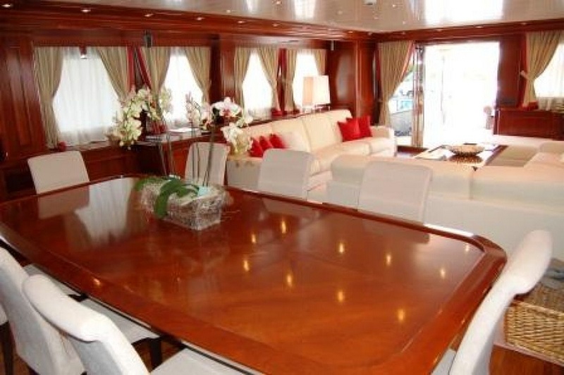 NEWFOUNDLAND nuevo todavÃa de 115 brazo rojo cereza madera INTERIOR cabina propietario cubierta con baño y privada Oficina interna ascensor 5 invitado cabinas con baño ESPACIOSO salón-cocina en el arco con tabla 4 cabinas con marinero y tres baños y comedor de ducha separada Torre de cabina proa de 900 KG. -TINA-FALYBRIDGE COMPLETO BOWTRHRUSTER y STERNTRHUSTER-completo SSB electrónica de 150-aire acondicionado en todos entornos DESSANILIZZATORE de 200 litros doble combustible negro-generador-bomba de agua-aguas grises teca cubiertas-doble proa WINCH a 380 voltios RINA placer barco clase A-50 litros consumo a 10 nudos |