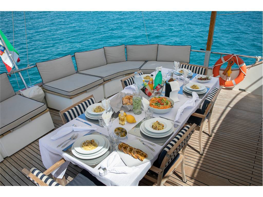 Notas internasLo Yacht a motore Tananai può ospitare fino a 12 persone in 6 comode e ampie cabine. La cabina armatoriale si trova sul ponte superiore, con una sala di rappresentanza raffinata e lussuosa, ampio letto matrimoniale, doppio bagno, cabine armadio e una zona ufficio con porte che si aprono sul ponte esterno dove è possibile godere di un area prendisole con comode sedute in totale privacy. Il ponte inferiore ospita la cabina Vip doppia a tutto baglio e le 4 cabina twins, ognuna dotata del proprio bagno e di ogni comfort. Notas de la instrumentaciónGPS, Autopilota, Radar, VHF, Lettore CD/DVD, Impianto Hi Fi interno ed esterno, TV Satellitare, Flat TV, Internet, Wi-FI, Dolby surround, Bose, Stazione per IPODNotas de armamentoAria condizionata, Dissalatore, Generatore, Elica di prua, Inverter, Lavastoviglie, Lavatrice, Ice maker, Passarella Idraulica, Stabilizzatori all'ancora, Stabilizzatori in navigazione, Iacuzzi,Tender, Jet-ski, Wakeboard, Sup, Giochi gonfiabili, Sci Nautico |