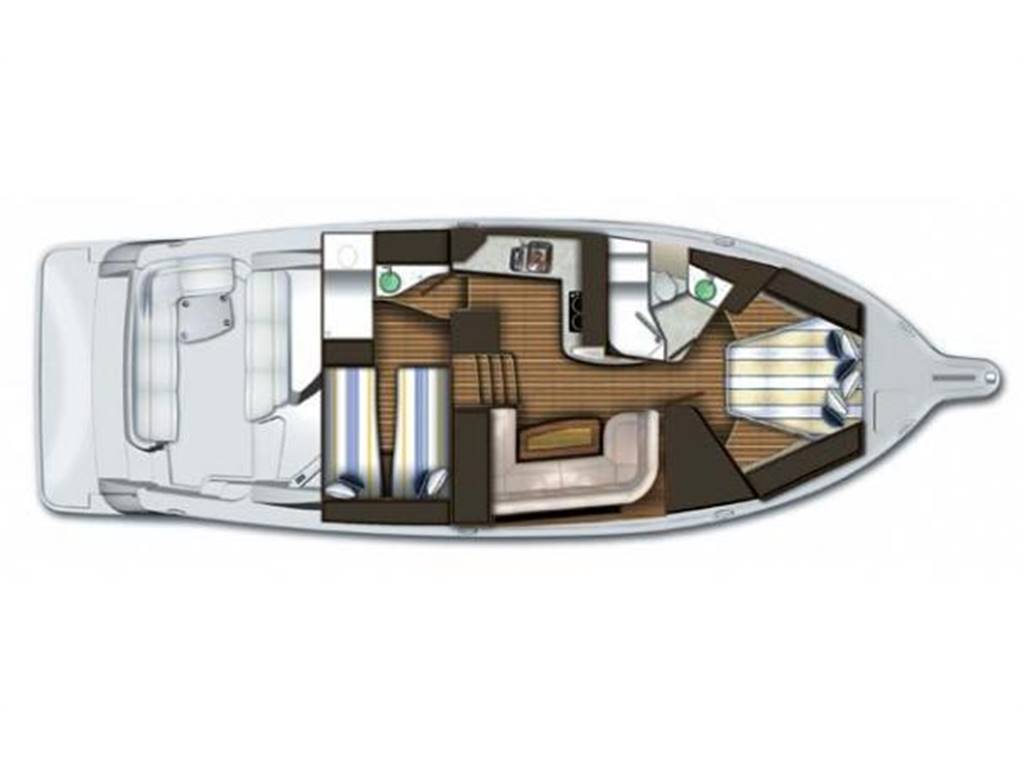 Perfect blue hull 43' get-away cruiser for family or friends. Twin Volvo Penta IPS600 435hp (only 500 h) 2 cabins and 2 heads layout. |