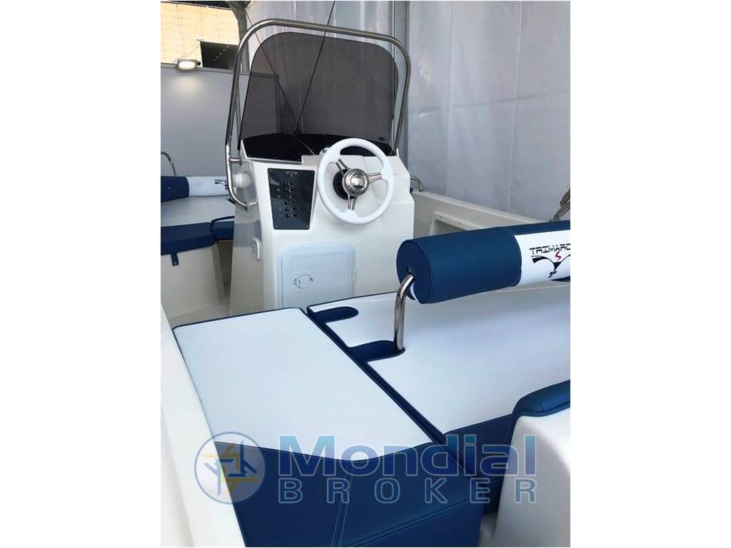 Notas internasLunghezza f.t.: 5,70 mt Larghezza: 2,10 mt Portata persone: 7 Peso (senza motore): 600 kg Potenza max: 115 CV Descrizione: Ampia barca open dal design pratico e funzionale. Consolle di guida centrale, grande seduta di poppa con poggiaschiena a posizione variabile per formare un grande prendisole di poppa. Notas de la instrumentaciónDotazioni di serie:Luci di Via, Luci 360°,Tromba, Pompa di sentina,Pannello interruttori con portafusibili, Bussola, Pulpito in acciaio,Scaletta di risalita, Bitte, Timoneria, Parabrezza, Tappezzeria completa ,Musone, Corrimano parabrezza Optionals: Impianto Carburante, Impianto Idrico con doccia, Stereo,Piede Tavolo Tendalino, Portacanne, Telo Copriscafo, Telo Copri Consolle Notas de armamentoversione 57 Fishing (sedute poppa separate): € 11.500,00 + ivaVersione 57 PRO: € 12.000,00 + iva (listino: € 13.600,00 + iva) VERSIONE DAY: Package con Mercury EFI PRO ELPT 40cv: € 16.800,00 + iva Package con SUZUKI DF 40A 16.400,00 + iva Package con SUZUKI DF 80A € 19.200,00 + iva Listino 9-2021 – prezzi escl iva - Il listino si intende illustrativo, non costituisce documento contrattuale, il cantiere si riserva il diritto di apportare modifiche in ogni momento. |