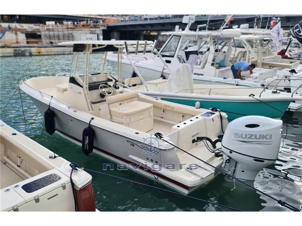 Notas internasNotas de la instrumentaciónAutoclave, Doccia esterna, Luci di cortesia, 2 Pompa di sentina automatica, Scaletta da bagno, Tromba, T-TopNotas de armamento4 Portacanne (SU TRINCARINO), Vasca del vivo (50L ca. CON POMPA E RICIRCOLO), Vasca pescato (SOTTO LA SEDUTA VM), Accessoriato per massimizzare la tua attività di pescaCorredata di tutto l’occorrente per la pesca. Vasca del vivo a poppa, la cui chiusura si trasforma in un comodo piano di lavoro; doccetta allungabile per sciacquare il pozzetto e l’attrezzatura. Possibilità di aggiungerne una seconda a mezzanave per arrivare a lavare la consolle e l’intera area di prua. Niente più tempo perso a sciacquare in porto lo sporco che si è seccato e niente più bagagliaio carico di attrezzatura maleodorante. DISPONIBILE ANCHE CON CONFIGURAZIONE DA CROCIERA (AVAIABLE CRUISING LINE) |