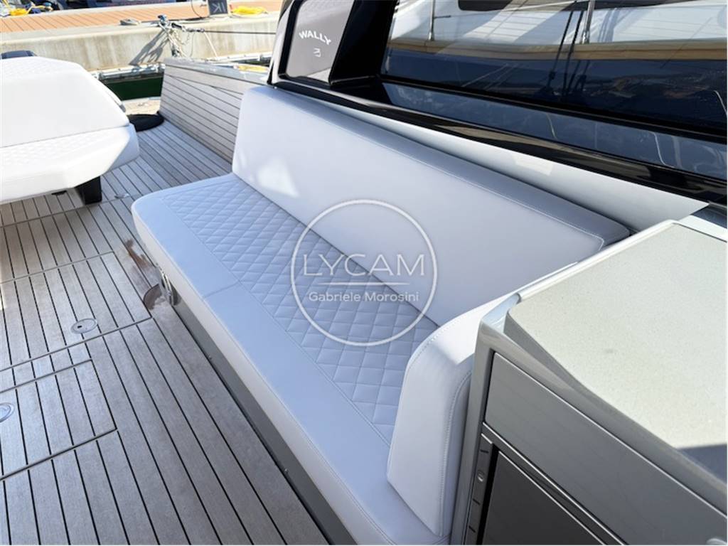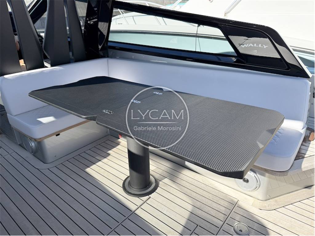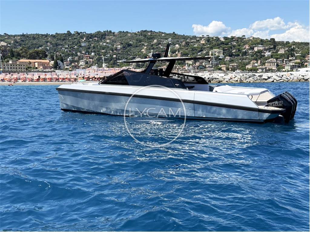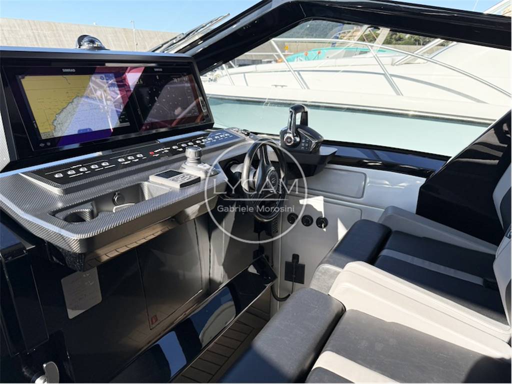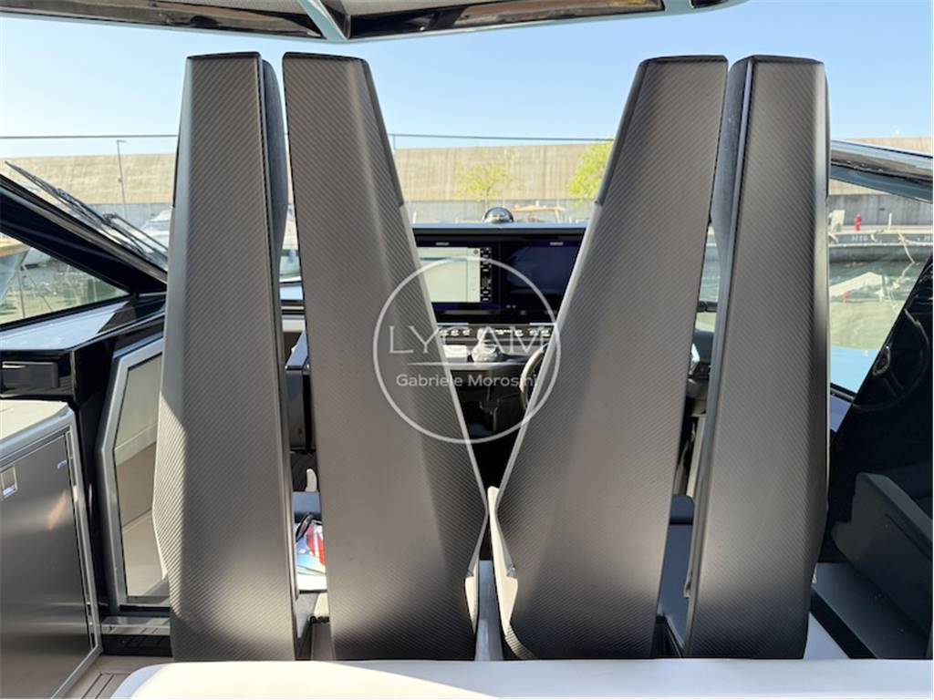 Notas de armamentoLa barca è equipaggiata con: Luci di navigazione; Luce di fonda; Faro brandeggio; Tergicristalli in carbonio; Sirena; Verricello ancora elettrico; Ancora; Bitte ormeggio; Plancetta in teak; Pozzetto in teak; Tavolo pozzetto; Doccia pozzetto; Passerella idraulica; Giro stabilizzatori Seakeeper (56 ore); Generatore Mase 8,5 Kw (200 ore); Cuscinerie prendisole esterni; Tendalino prendisole poppa; Inverter 2.000 V; Aria condizionata; Ghiacciaia 230V; Dotazioni di sicurezza (12 persone); Batterie; Caricabatterie; Stacca batterie; Presa 220V; Mezzo marinaio; Altoparlanti dinette; Asta portabandier