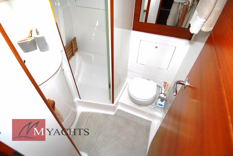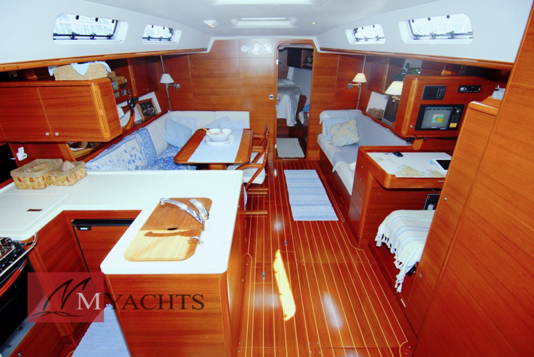 Notas internasArco de cabina con cama doble con baño privado con bañera y ducha, 2 camarotes popa con cama doble, cada una con baño (baño con ducha dx), gran comedor en forma de U con mesa y dos sillones y sofá, cocina al lado con tres fogones con horno, 2 neveras, mesa de cartas con Banco de almacenamiento de información. Cabina de la tripulación hacia adelante para 1 persona con ducha/WC, lavabo y vestuario,
